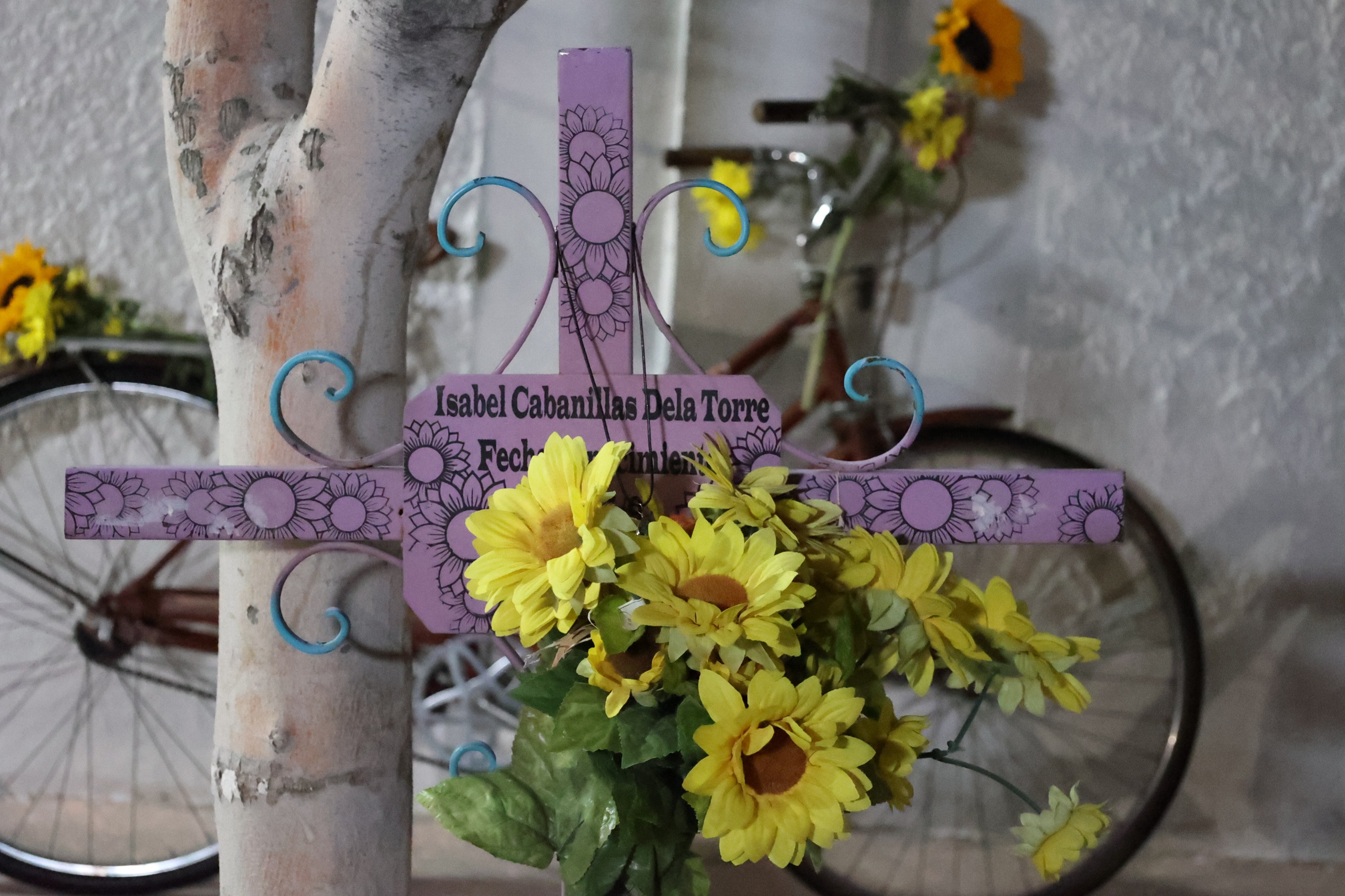 La caminata y rodada finalizaron en el punto donde fue encontrado el cuerpo de la artista, entre las calles Inocente Ochoa y Francisco I. Madero, en la Zona Centro, donde se colocó el Memorial de la Bici Rosa y una cruz metálica.