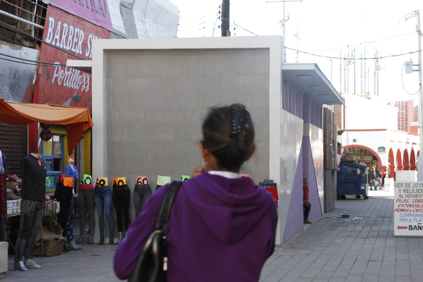 Desde inicios de 2017, en la primera administración municipal de Armando Cabada Alvídrez, comenzaron las gestiones de parte del Instituto Municipal de las Mujeres para la construcción de un “Corredor Seguro para Mujeres” en el Centro de Juárez, con la intención de brindar un espacio de protección en una zona de la ciudad con un alto índice de hechos de violencia de género. Las obras, que comenzaron oficialmente en noviembre del año pasado, se plantearon desde el principio como parte de un proyecto integral que contemplaría la construcción de infraestructura pública, la aplicación de tecnología y la creación de programas sociales. De acuerdo con el informe de actividades 2016-2018 del Instituto Municipal de las Mujeres, el Corredor Seguro forma parte de “una estrategia integral que busca prevenir la violencia de género en el Centro Histórico de Ciudad Juárez”. Las áreas estratégicas identificadas por el IMM para la implementación del Corredor Seguro contemplan el desarrollo de infraestructura urbana con enfoque de género, el uso de tecnología para la prevención de la violencia, y la recuperación de “lazos comunitarios y de participación ciudadana”. En términos prácticos, la construcción del Corredor incluye 12 estaciones digitales con botones de pánico, internet gratuito, conexión eléctrica, cámaras de seguridad, torretas y bocinas; un centro de atención integral para mujeres, rehabilitación de áreas peatonales, siete casetas de vigilancia, 12 botones de pánico, cinco baños públicos, trabajos de mejoramiento de vialidades y seis kilómetros de ciclorruta, e intervenciones en el espacio público con caminatas, conciertos, talleres y programas sociales. Hasta hoy, el Corredor Seguro ya cuenta con las instalaciones del Centro de Atención Integral para Mujeres, las casetas de vigilancia y los cinco baños para hombre y mujeres; no obstante, los baños (de los cuales sólo tres funcionan) y las casetas de seguridad ya han sido vandalizados y en su interior hay basura y tierra.