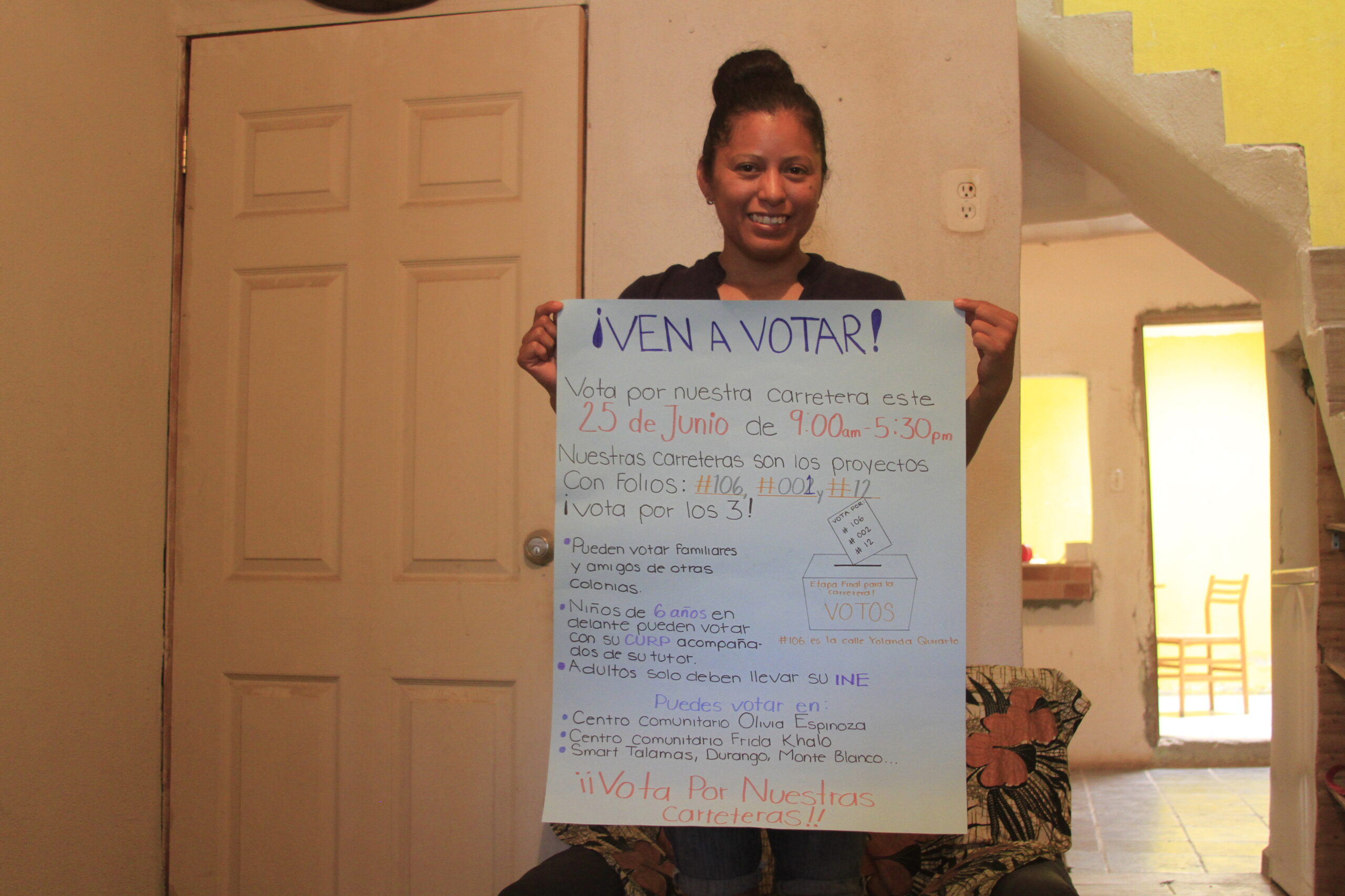 Diana Chávez, madre de una niña con discapacidad cerebral severa, ha impulsado por diferentes mecanismos un proyecto de pavimentación con accesibilidad universal en la calle Yolanda Quirarte de Sánchez, que lleva a la Unidad Básica de Rehabilitación del Centro Integral Olivia Espinoza, en el suroriente de la ciudad. Finalmente, el Gobierno Municipal pavimentará la calle, pero no tomará en cuenta el diseño de accesibilidad propuesto por la población con discapacidad y adultos mayores que habitan en la zona.