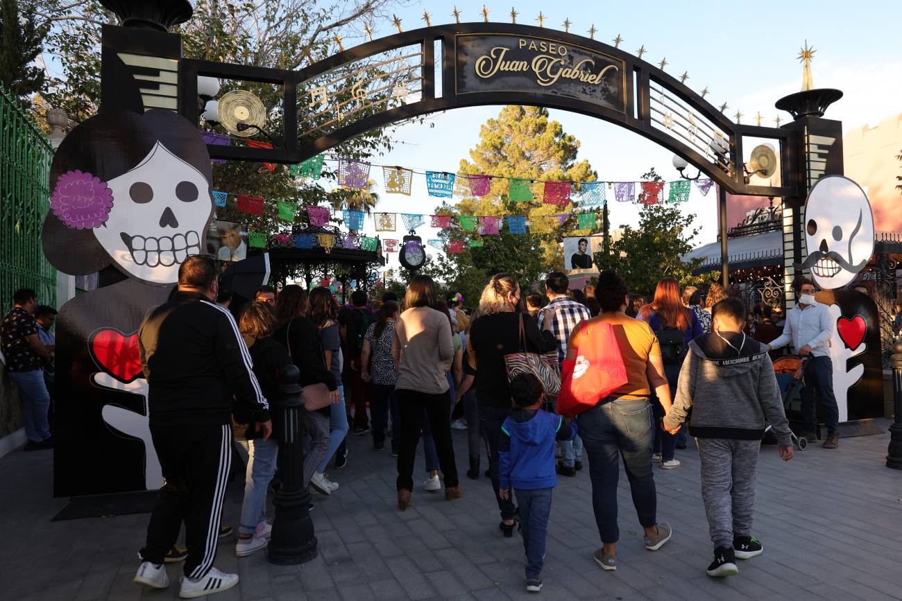 Ciudad Juárez, Chihuahua.— Cientos de personas acudieron ayer al evento Amor Eternamente Muerto, un espacio donde, a través del arte y la gastronomía, se recordó a quienes ya no se encuentran entre nosotros. El evento, que se realizó en el marco de las festividades de Día de Muertos, se llevó a cabo en Casa Martino y en el Paseo Juan Gabriel: Siempre en mi mente, ubicados sobre la avenida 16 de Septiembre de la Zona Centro. Las personas que asistieron pudieron observar varios altares de muertos dedicados a quienes fallecieron de cáncer y COVID-19; también se montó un altar a diversas mujeres artistas, a Juan Garrido, personaje que sembró trigo en México por primera vez y a las mascotas que partieron.