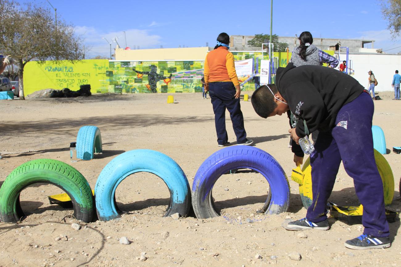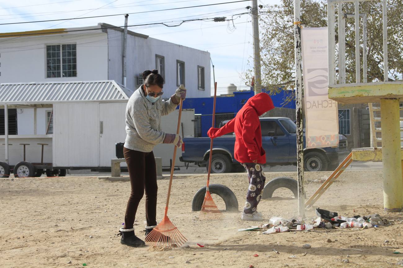 Ciudad Juárez, Chihuahua.— Este sábado vecinos del fraccionamiento Parajes de Oriente y voluntarios de diversas asociaciones civiles, así como niñas y niños que habitan en ese sector, pusieron manos a la obra en la primera Jornada de Mejoramiento Urbano en la que unieron esfuerzos para limpiar y pintar su parque. Casi 30 personas trabajaron toda la mañana para mejorar el entorno de este espacio público; los vecinos reflexionaron sobre su entorno y lo que les gustaría tener en el parque, como botes de basura, bebederos y juegos infantiles. Esta actividad se llevó a cabo gracias al apoyo de la Fundación del Empresariado Chihuahuense (Fechac), y en ella participaron Juárez Limpio, Centro Humano de Liderazgo, A.C., Fundación Paso del Norte y Plan Estratégico de Juárez.