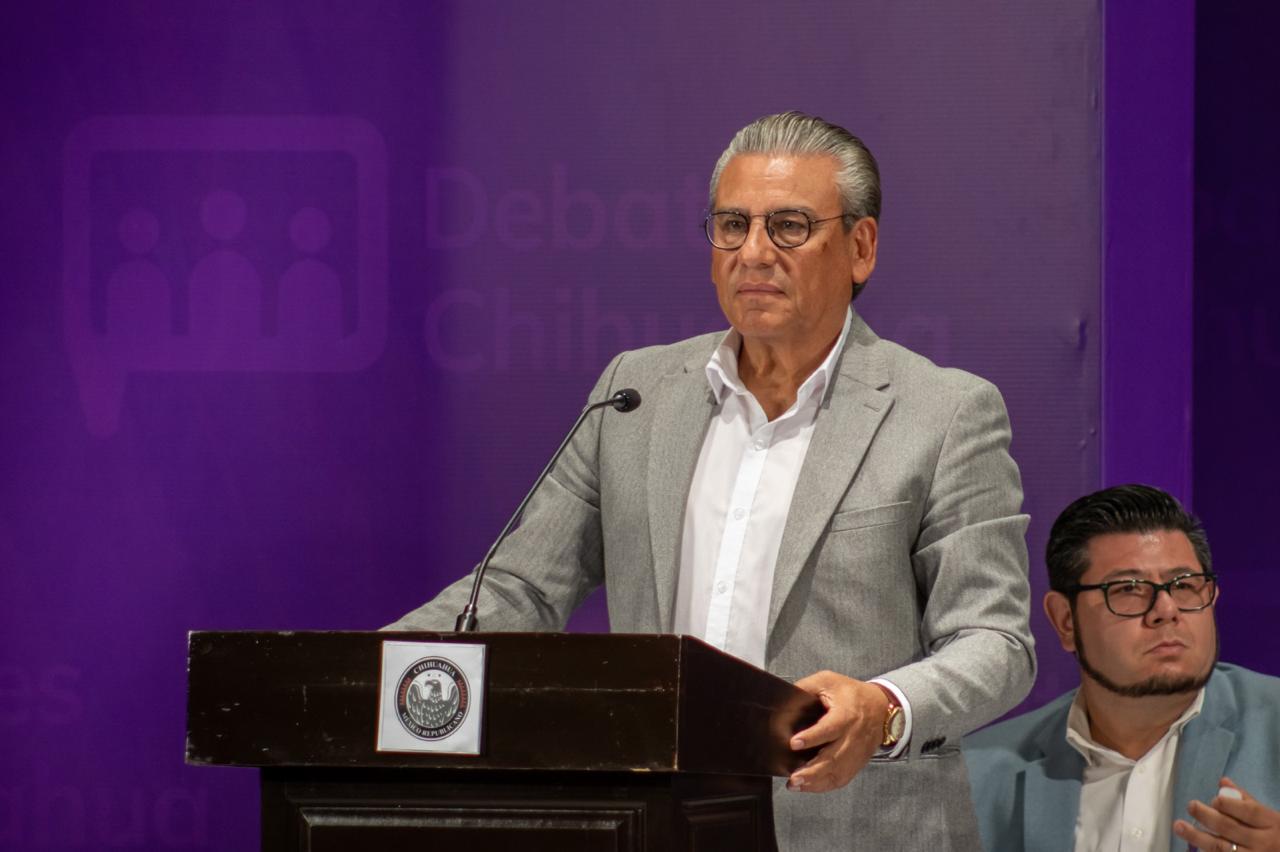 El debate contó con la participación de todos los candidatos: Cruz Pérez Cuéllar (Morena y PT), Esther Mejía Cruz (Movimiento Ciudadano), Rogelio Loya Luna (PAN, PRI y PRD), Fernando Rodríguez Giner (PVEM), Jaime Flores Aguirre (Partido Pueblo) y Enrique Romanillo Leyva (México Republicano de Chihuahua).