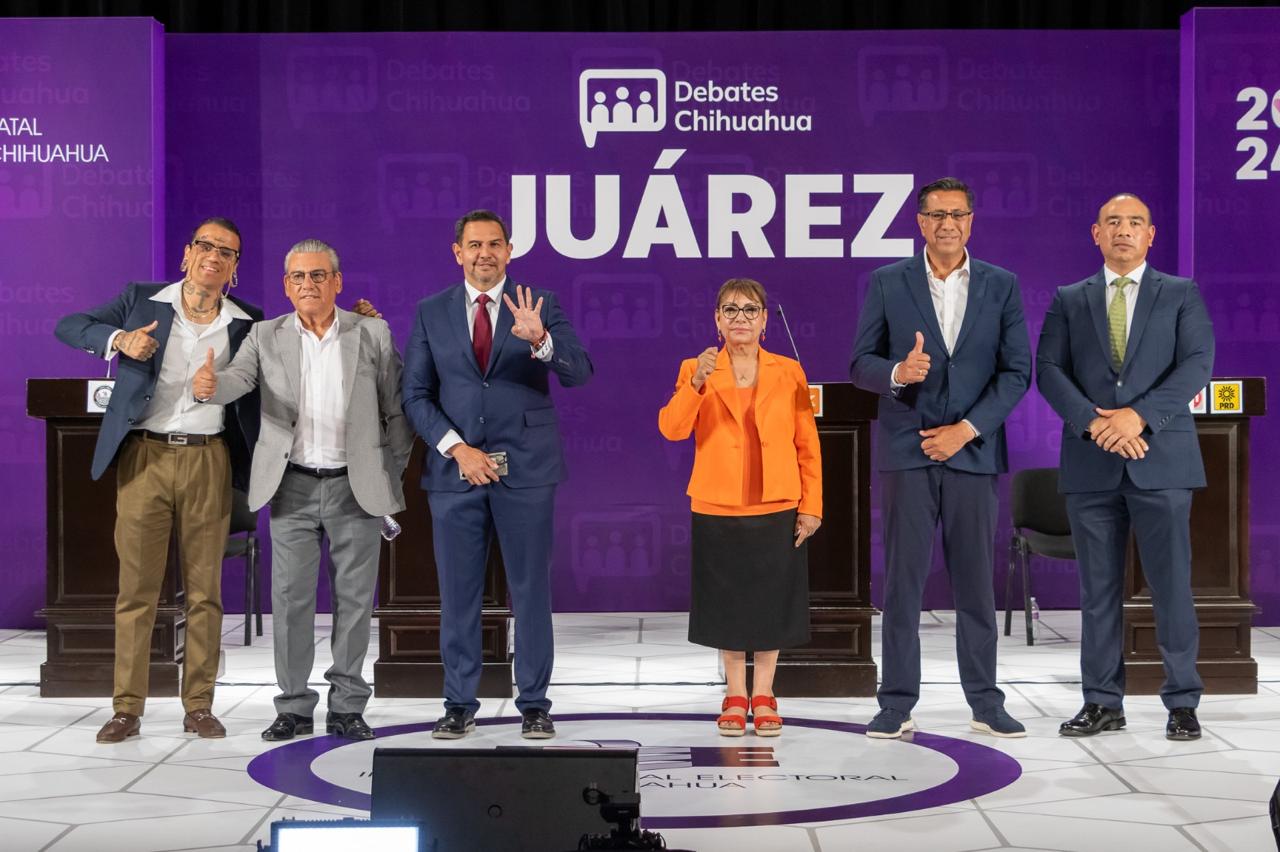 Ciudad Juárez, Chihuahua.— Los candidatos y la candidata por la presidencia municipal de Juárez participaron este viernes 17 de mayo en el debate electoral del Instituto Estatal Electoral de Chihuahua (IEE), en el que presentaron algunas propuestas sobre seguridad, servicios públicos y movilidad, y aprovecharon para lanzar acusaciones entre sí, de manera que muchas de las preguntas de la ciudadanía quedaron relegadas.