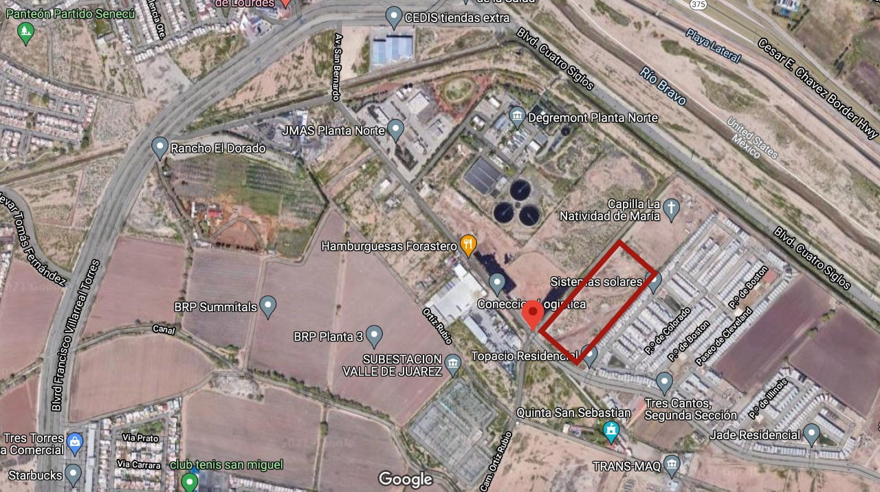El predio para los plantes se ubica entre la calle Camino Ortiz Rubio y la avenida San Bernardo, justo a un lado de Topacio Residencial. Puedes consular la ubicación de Google Maps en este enlace.