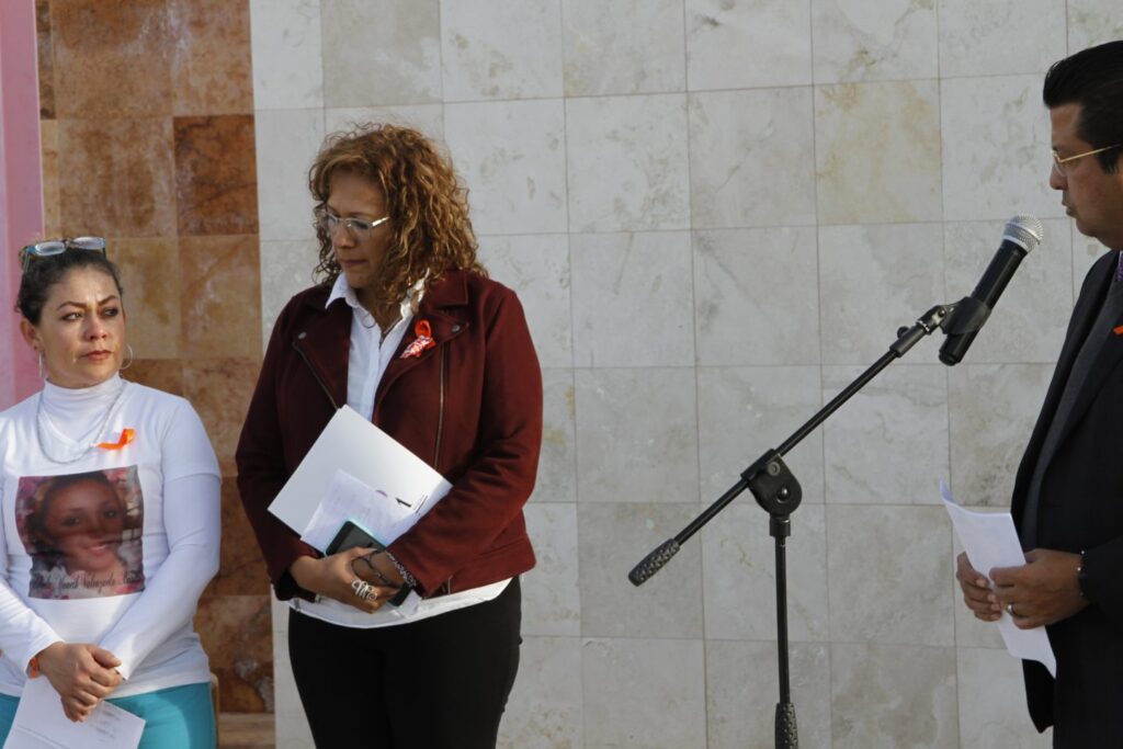 Ciudad Juárez, Chihuahua.— Un poco al oriente de Ciudad Juárez hay un memorial, una cruz rosa de metal, una escultura, andadores y las placas, sobre todo las placas con nombres. El memorial, antes de serlo era un campo del que se cosechaba algodón. En noviembre de 2001 lo que cosechó, lo que surgió de aquella tierra, fueron los restos de ocho mujeres asesinadas. El caso llegó hasta la Corte Interamericana de Derechos Humanos que encontró al Estado Mexicano culpable de no garantizar la vida de las víctimas y de una sistemática violación a sus derechos humanos y de sus familias. Este viernes, apenas pasadas las tres de la tarde, un grupo de funcionarios municipales llega al memorial para dejar junto a la cruz rosa, una corona de flores. Todos visten de negro. Excepto una mujer que no es funcionaria y lleva una playera blanca. Estampado al frente está el rostro de su hija. Atrás dice “ni perdón, ni olvido”. Silvia Banda toma el micrófono para decir por qué está ahí. Hace ocho años, el 23 de agosto de 2010, desapareció su hija Fabiola Janeth Valenzuela Banda, de 18 años, en el Centro de esta ciudad. En septiembre del mismo año la Fiscalía encontró sus restos. Pero los entregó un año después. Silvia está ahí parada para pedir algo. Un detalle con las mujeres asesinadas: que pongan su rostro y una pequeña semblanza junto a las placas, junto a cada nombre. Para que no se olviden. Para que nombre e imagen se asocien. Pide memoria, en el memorial, hace tres años.