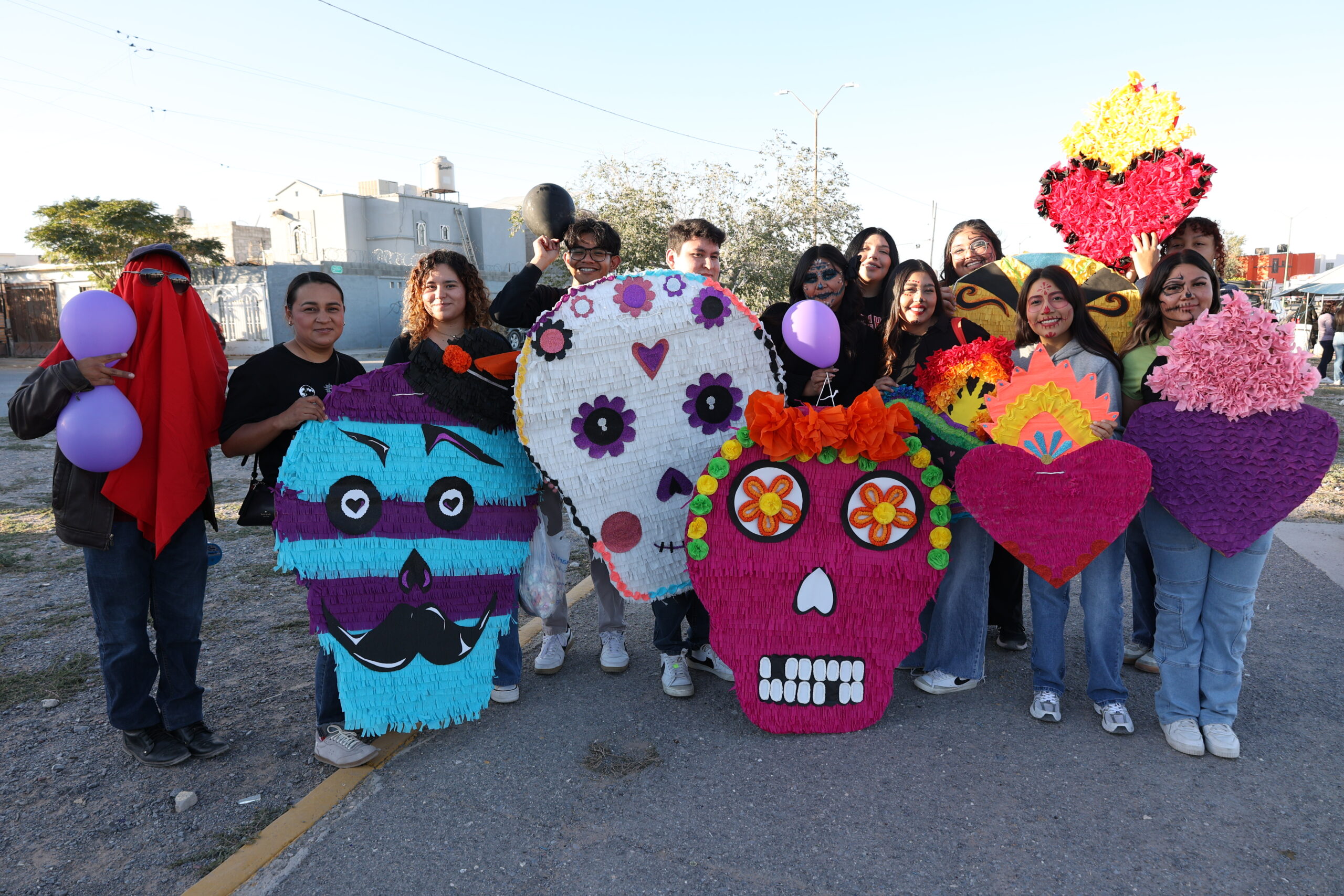 Ciudad Juárez, Chihuahua.– Entre música, disfraces y calaveritas, el fraccionamiento Parajes del Sur celebró la noche del 31 de octubre con una caravana comunitaria organizada por Arte en el Parque, que recorrió el parque lineal de Campo Grande, desde la calle Tierra de Fuego hasta Parajes del Sur.