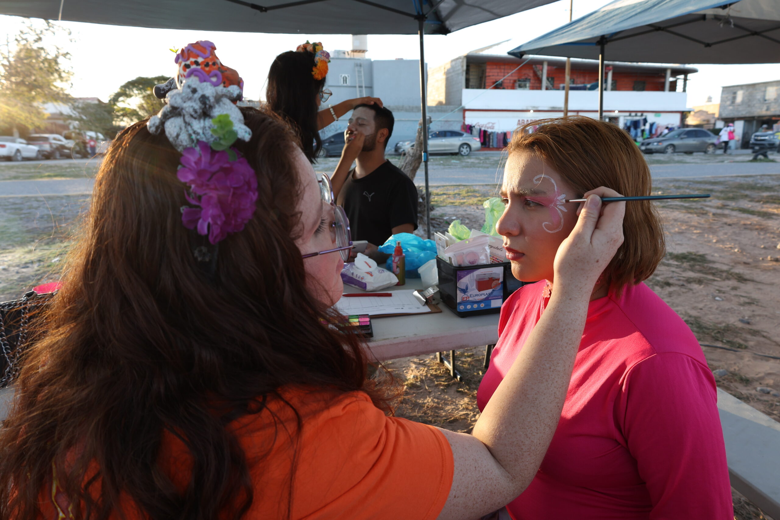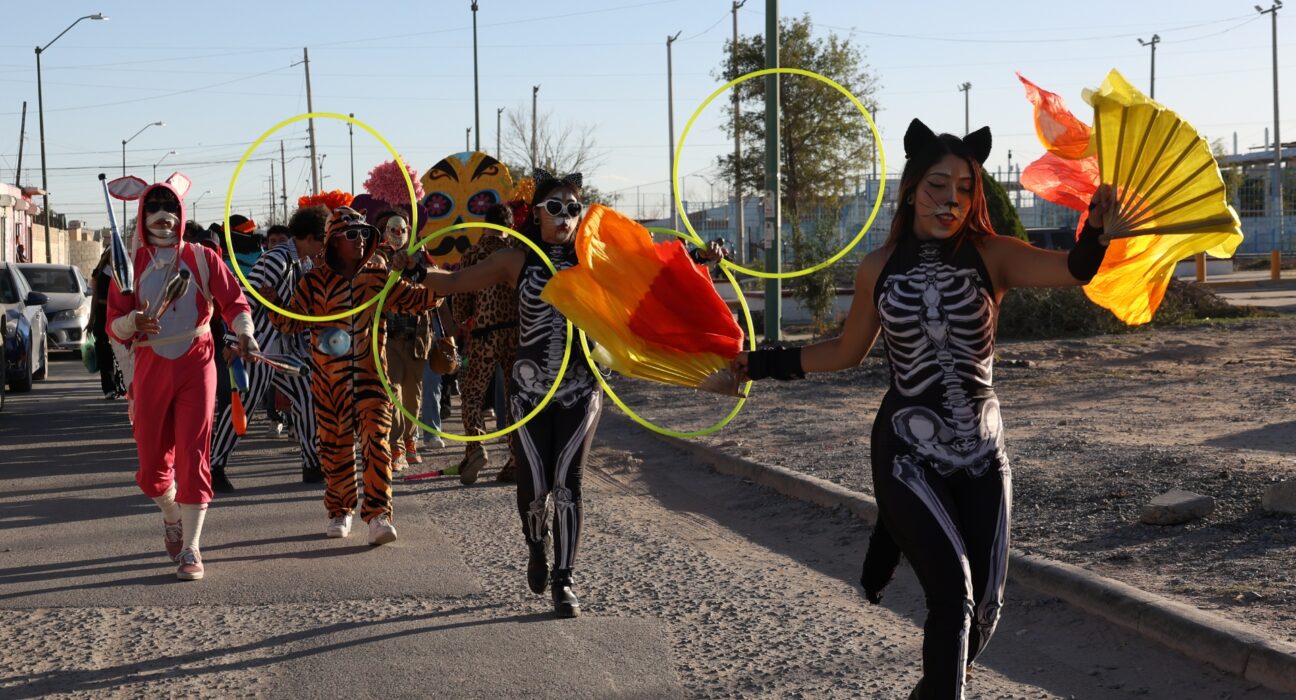 El desfile, que reunió a más de 80 personas entre vecinas, vecinos, artistas y voluntariado del programa PERS del Centro Humano de Liderazgo (Cehlíder), transformó el espacio público en un corredor festivo donde se mezclaron las tradiciones del Día de Muertos y Halloween. Conforme avanzaba la caravana, se sumaban más habitantes disfrazados, niñas y niños que pedían dulces y familias que salían a observar el recorrido.