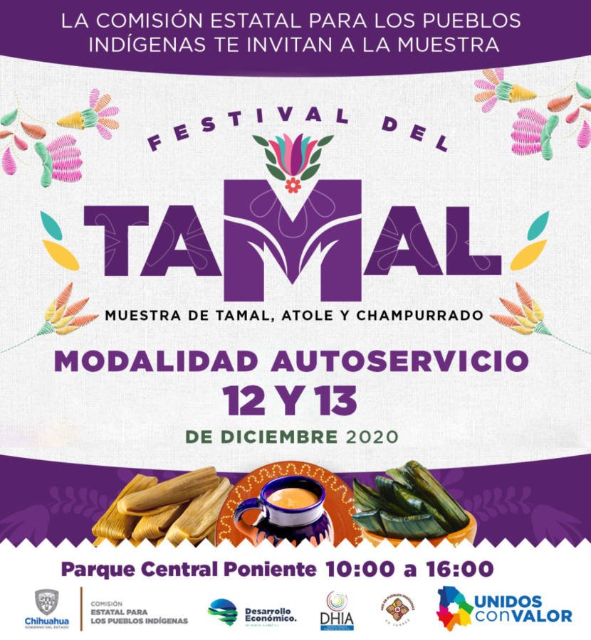 Ciudad Juárez, Chihuahua.— La Comisión Estatal de Pueblos Indígenas (COEPI) invita al Festival del Tamal 2020 que se llevará a cabo en el estacionamiento del Parque Central Poniente los días 12 y 13 de diciembre, de las 10:00 a las 16:00 horas. El festival, que tiene la intención de apoyar la difusión de la cultura y la economía de las comunidades indígenas, contará con autoservicio y se realizará respetando las medidas de higiene y sana distancia para prevenir contagios de COVID-19.