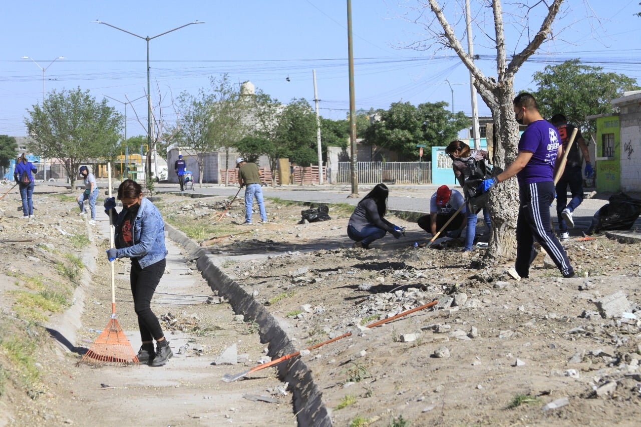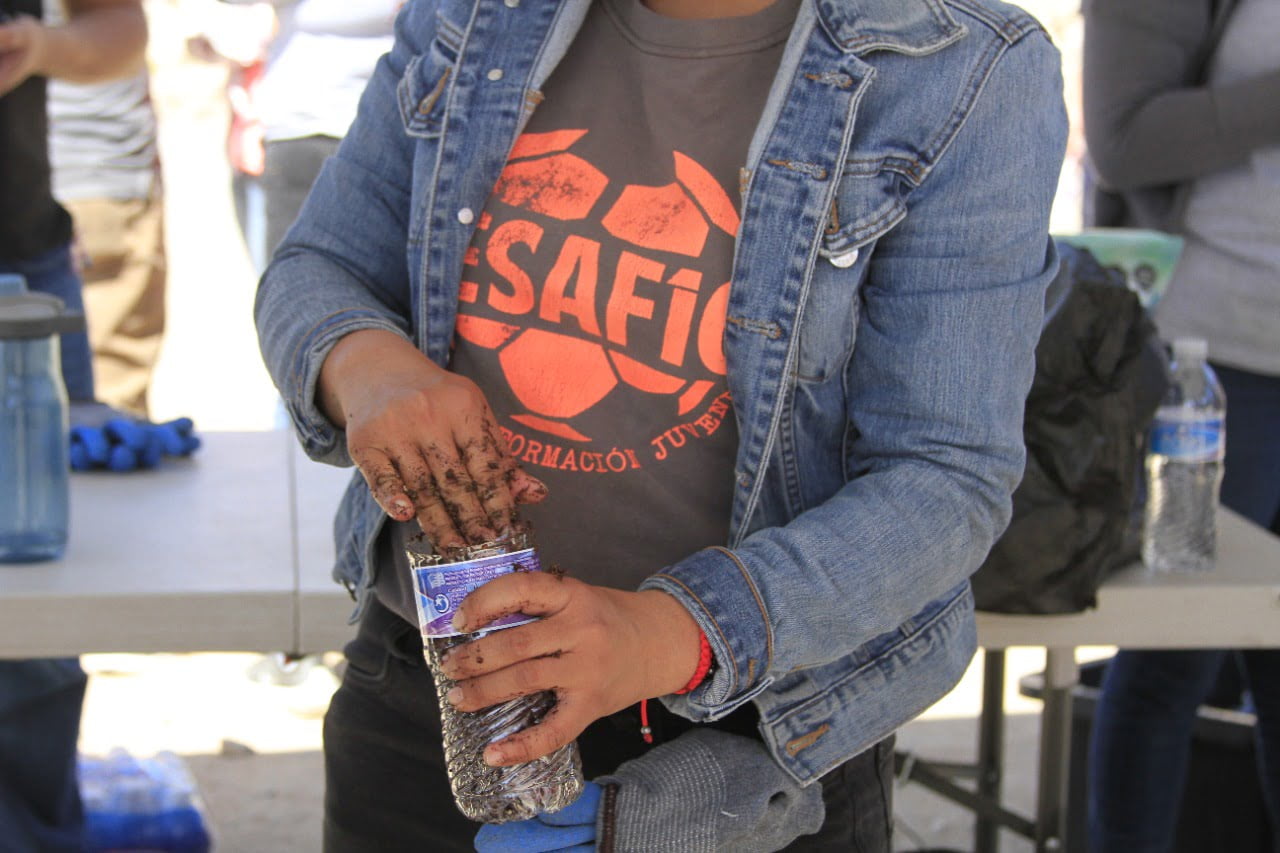 Ciudad Juárez, Chihuahua.— La asociación civil Juárez Limpio, en colaboración con el Programa Desafío de la Fundación Comunitaria de la Frontera Norte, participaron en la jornada de mejora del entorno urbano en el Parque Lineal Desierto de Kalahari de Parajes de Oriente. Desde las 8:30 de la mañana del viernes 22 de abril, integrantes de ambas organizaciones arribaron al lugar para participar en diversas actividades de limpieza. Con picos, rastrillos, palas, bolsas de basura y guantes, los participantes juntaron decenas de bolsas de basura que había en el lugar, la cual fue separada en plásticos, metales vidrio y basura en general para ser recogidos por los servicios de limpieza municipales y por empresas recicladoras con las que Juárez Limpio colabora.