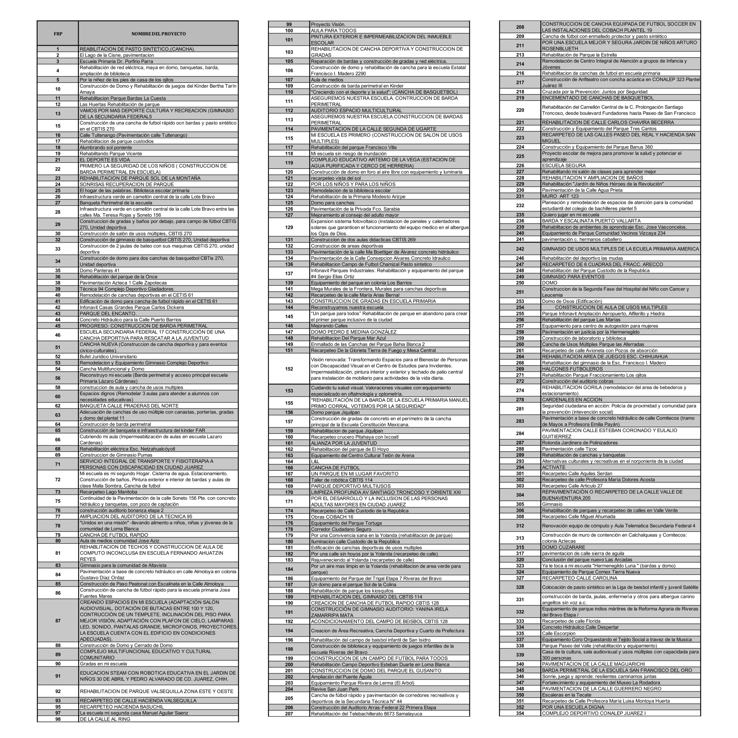 Ciudad Juárez, Chihuahua.— El gobierno municipal de Juárez publicó este jueves la lista final de los 335 proyectos que serán sometidos a consulta pública en la jornada de votación del Presupuesto Participativo 2024.