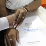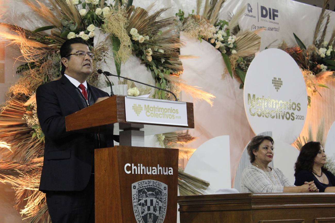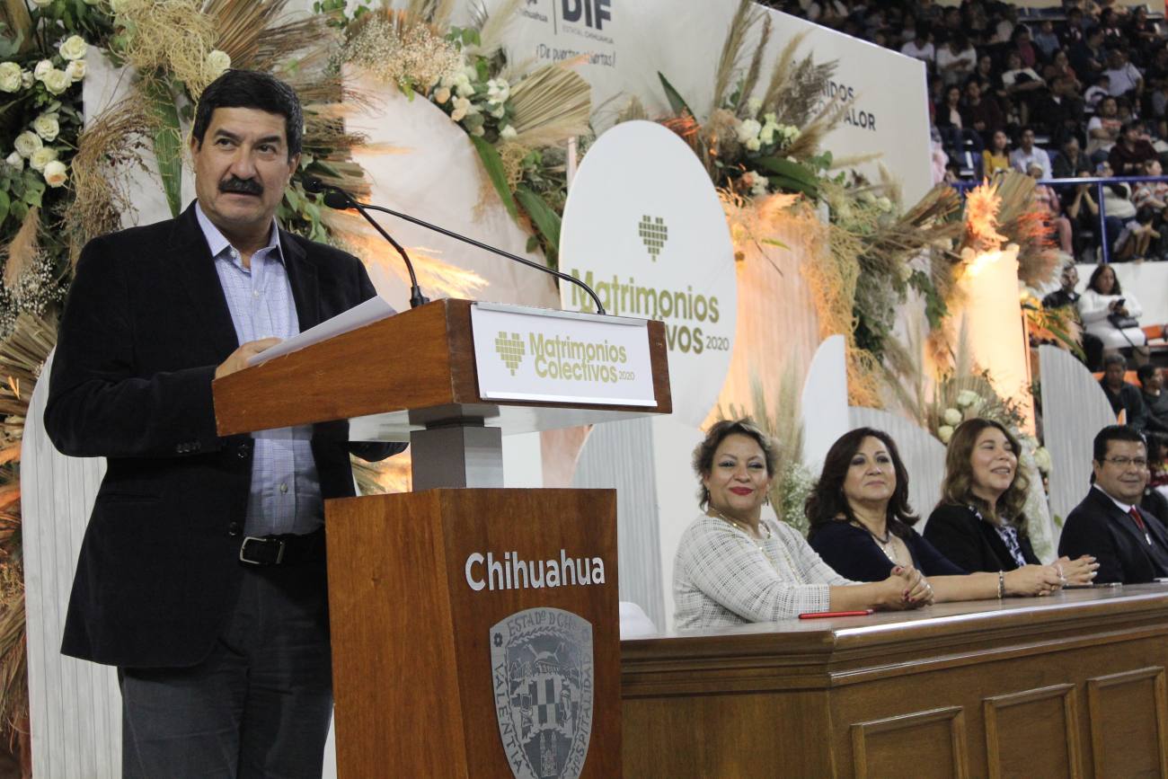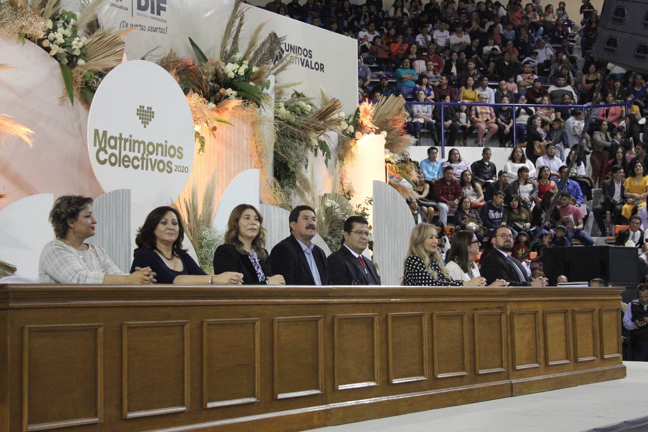 Ciudad Juárez, Chihuahua.- Dos mil 43 parejas fueron casadas hoy por el Gobernador del Estado, Javier Corral Jurado, en la boda colectiva más grande que se ha celebrado en todo el país hasta el momento. “Hoy es un gran día no solo para ustedes. Quiero decirles que este es un día no solo histórico en sus vidas, lo es también histórico para Chihuahua y para nuestro país porque hoy estamos rompiendo el récord no solo en el estado sino a nivel nacional, del número de parejas que contraen matrimonio en una boda colectiva”, indicó el Gobernador. Así mismo informó que de esta cifra total, 45 parejas estaban conformadas por migrantes; 30 hombres y 15 mujeres migrantes provenientes de Centro América y del Caribe. “Tenemos 30 matrimonios donde él es extranjero. Hay 23 cubanos, tres hondureños, dos guatemaltecos y dos salvadoreños. Hay otras 15 parejas donde ella es extranjera; 13 cubanas, una guatemalteca y una hondureña”, aclaró. Finalmente recalcó que hoy se casaron 33 parejas del mismo sexo sin la necesidad de tramitar un amparo que les permitiera hacer el procedimiento. “En total estamos llevando a cabo la ceremonia de mayor concentración de parejas garantizándole a todas y a todos el derecho a la protección jurídica que significa el matrimonio”, agregó. De acuerdo con Corral Jurado, en lo que va de su administración, 14 mil parejas han contraído matrimonio. Al evento acudió la directora del Registro Civil, Ines Martínez; el Alcalde, Armando Cabada Alvídrez; la diputada, Marisela Terrazas; el titular del Consejo Estatal de Población, Enrique Valenzuela y en representación del Tribunal Superior de Justicia del Estado, Olga Cano.