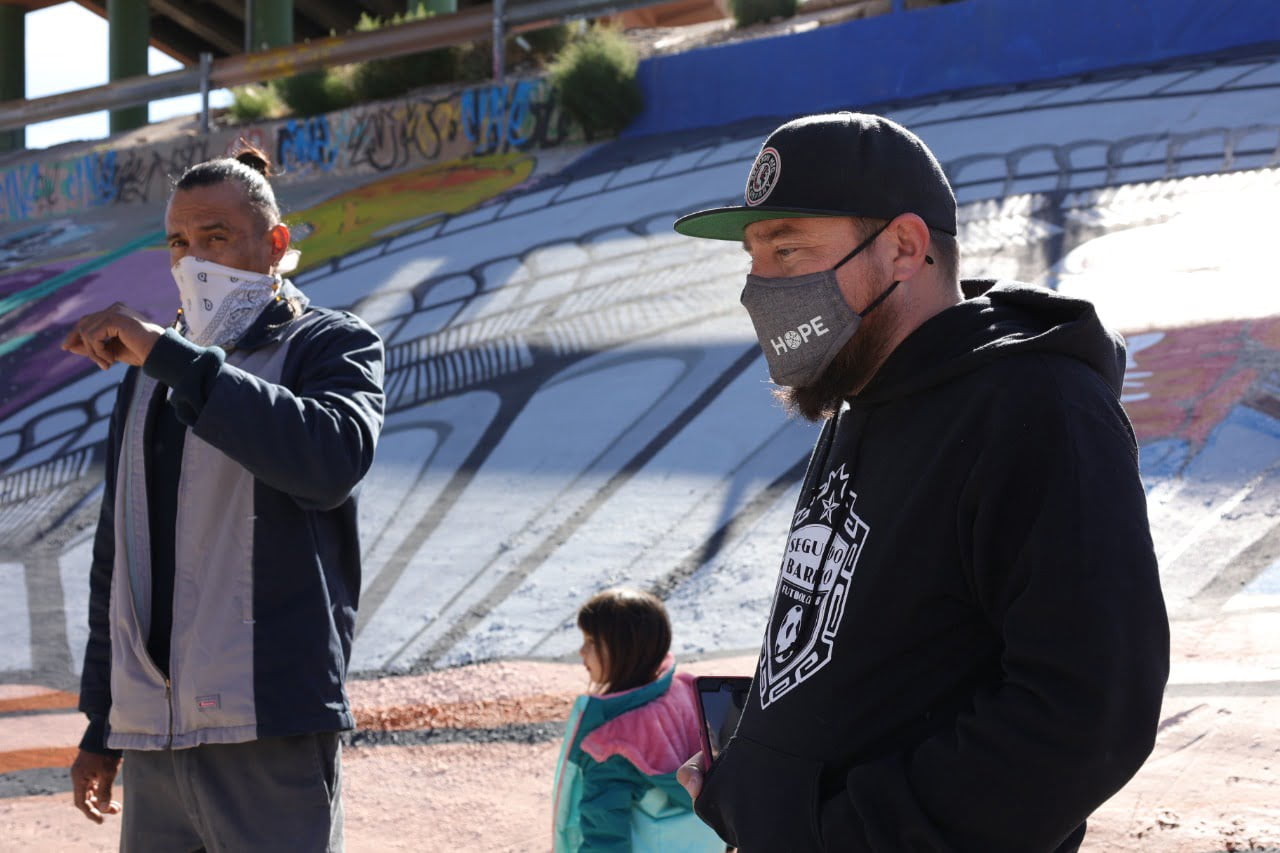 Ciudad Juárez, Chihuahua.— Durante una semana, el artista local Jorge ‘Yorch’ Pérez y el Colectivo Chopeke pintaron un mural en el lado mexicano de la franja fronteriza que separa a Juárez de El Paso, Texas, como una protesta pacífica para visibilizar el tema de la migración. La obra se hizo justo debajo del Puente Internacional Paso del Norte, muy cerca de la zona donde las personas migrantes acostumbran cruzar la frontera de manera irregular para entregarse a las autoridades migratorias de Estados Unidos; un espacio estratégico para que el mural tenga mayor visibilidad. Bajo el puente – Under the Bridge, es el nombre del mural en el que se plasmó el puente fronterizo que en un cierto punto se convierte en dos brazos que unen ambos lados de la frontera, y en el que también se observa a un hombre bracero y a una mujer obrera de la maquiladora. Yorch explicó que el mural “refleja otros tiempos de la migración”, cuando jornaleros mexicanos cruzaban hacia Estados Unidos para trabajar en el campo durante el Programa Bracero (1942-1964), y cuando llegó la industria maquiladora a la ciudad, teniendo como principal mano de obra a las mujeres.