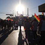 Ciudad Juárez, Chihuahua.- Miles de personas salieron a marchar ayer por la inclusión de todas las formas de relaciones afectivas en la marcha número 15 de la comunidad LGBTTTI. La marcha que, partió del Parque Borunda ,recorrió la avenida 16 de Septiembre y terminó con un evento en el Monumento a Benito Juárez, donde los organizadores agradecieron a los asistentes por acompañarlos en este evento anual que se realiza desde hace 15 años. Ignacio Díaz, organizador de la marcha, dijo que para este año el lema de la marcha cambió de ser del orgullo gay, a la marcha por la inclusión. Díaz, mencionó que durante los últimos dos años y medio la Oficina Municipal de Atención a Personas LGBT+ ha recibido 75 quejas por discriminación, algunas sobre el ámbito laboral donde hombres y mujeres que asumen su homosexualidad no han sido contratados o se les ha negado la oportunidad de ascender de puesto. En el contingente se encontraban personas de la comunidad LGBTTTI, de diversos colectivos, de la Comisión Estatal de Derechos Humanos, familias, y sociedad en general.