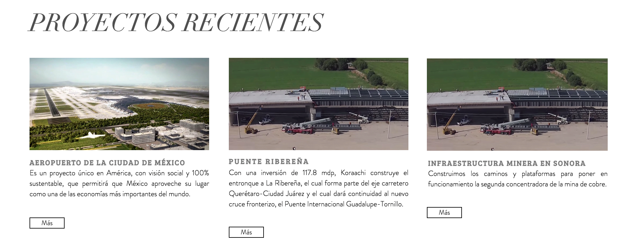 Grupo Koraachi también incluye en su sitio la construcción del entronque La Ribereña, en el puente internacional Guadalupe-Tornillo, por 117.8 millones de pesos. En realidad fueron las empresas Gexiq y Urbanissa quienes en 2015, dos años antes de la constitución de Koraachi, obtuvieron un contrato por 117 millones 791 mil pesos para la “construcción del Entronque la Ribereña mediante la construcción de trabajos en terracerías, obras de drenaje, estructura, muros mecánicamente estabilizados, pavimentos, trabajos diversos y señalamientos”.