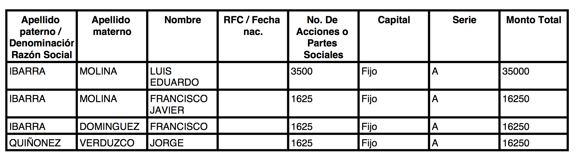 En trituradora Águila, Quiñónez posee acciones por 90 mil pesos y en Coniq 16 mil 250 pesos. Todas las empresas fueron fundadas por la familia Ibarra Molina, y en todas ellas actualmente permanecen los tres accionistas.