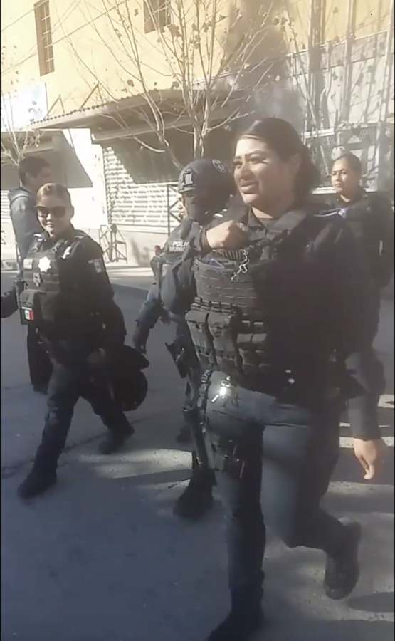 Ciudad Juárez, Chihuahua.— Alrededor de las 11 de la mañana de ayer, colectivos feministas, artistas y ciudadanía en general se congregaron en el Monumento a Benito Juárez para rendirle un homenaje a Isabel Cabanillas de la Torre, activista y pintora juarense asesinada la madrugada del sábado 18 de enero en la Zona Centro. Un operativo de poco más de 50 elementos de Seguridad Vial y de la Secretaría de Seguridad Pública Municipal (SSPM) acudieron al homenaje y caminaron a los costados del contingente que marchó desde el Monumento hasta la calle Inocente Ochoa casi esquina con Francisco I. Madero, sitio donde encontraron el cuerpo de Isabel. Durante la marcha, manifestantes denunciaron acoso, burlas y una actitud hostil por parte de los elementos de seguridad, quienes también estuvieron fotografiando y tomando video de la ciudadanía asistente. Asimismo, elementos de la Policía Municipal fueron captados riendo y tomándose fotos mientras la marcha avanzaba por las calles del Centro.