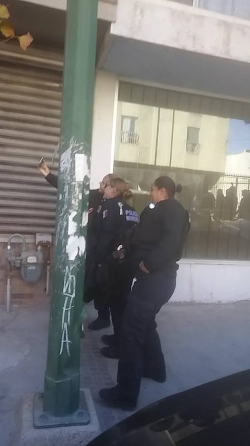 La manifestante agredida, de quien se resguarda su identidad, declaró que entabló una breve conversación con dos agentes, que también se encontraban en el botón de pánico, sobre la ineficiente red de seguridad implementada por el Gobierno Municipal.