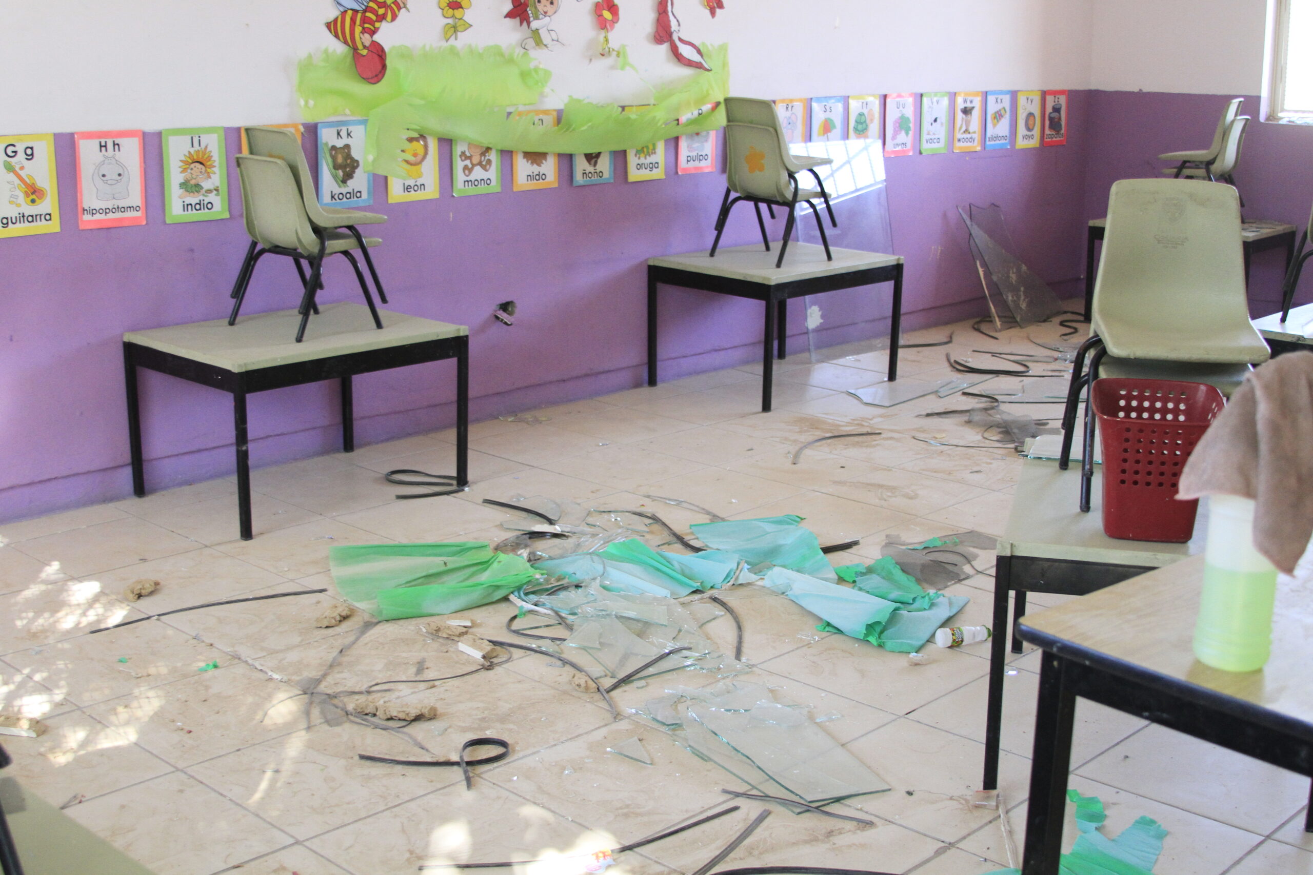 El motivo: una serie de robos y vandalismo en contra del mobiliario, la infraestructura y hasta el material didáctico con el que las maestras daban sus clases. Los salones lucían destrozados, sin ventanas ni energía eléctrica. Habían desaparecido los juegos infantiles, los motores de los aires y hasta las tuberías de agua.