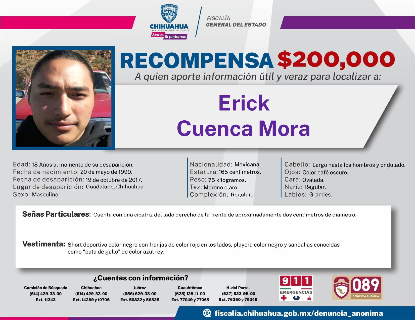 Érick tenía 18 años el 19 de octubre de 2017. Ese jueves estaba en su casa en San Agustín y no en su trabajo, en una agencia de autos en Ciudad Juárez, porque el día anterior fue con el médico para que le sacaran una uña enterrada en el pie que le causaba mucha molestia.