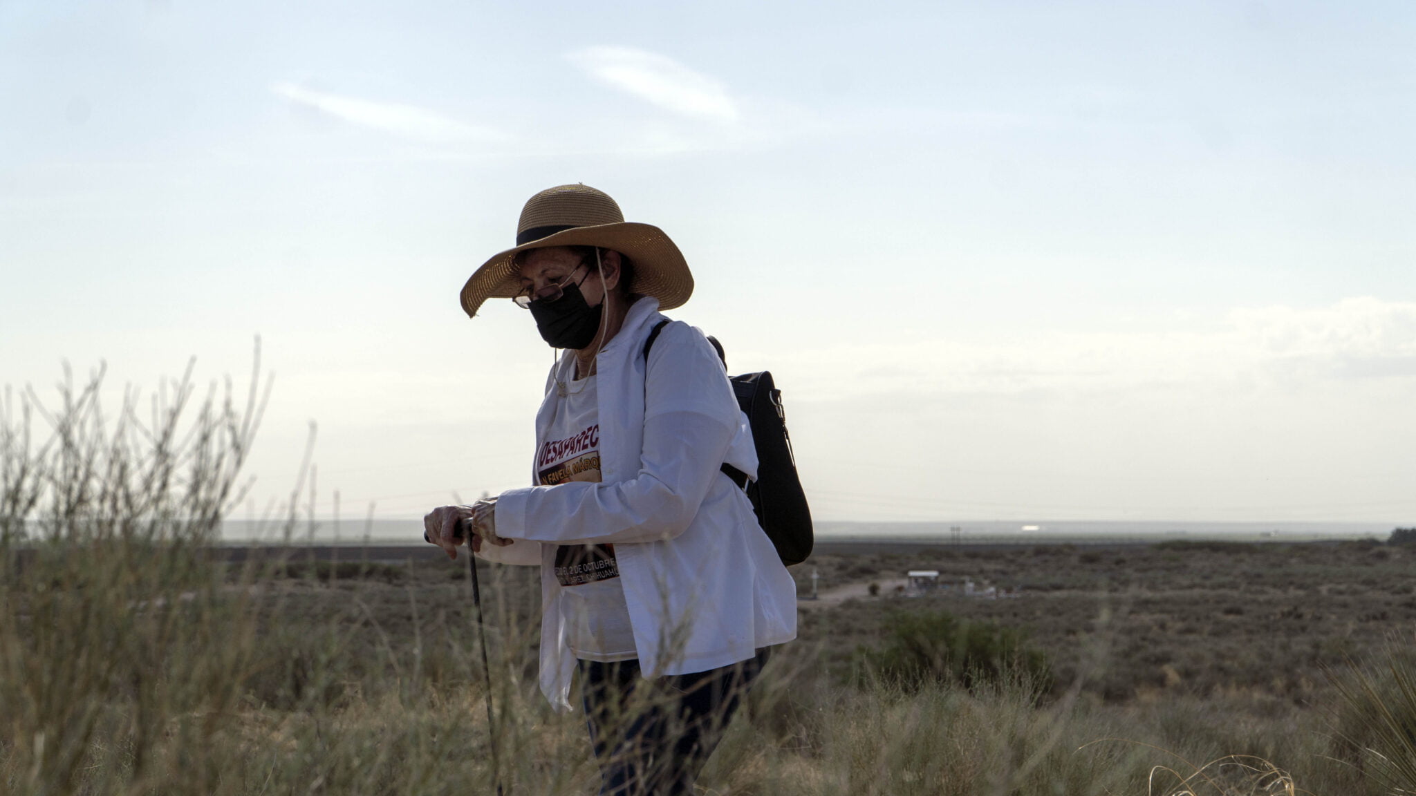 A ratos Laura se recarga sobre una varilla con la que pica el suelo, porque le duele la rodilla, recientemente operada. Lleva un sombrero de ala larga que la protege del sol, la playera blanca con la imagen del rostro de su hijo y de su hermano. Va rasgando el suelo, cansada y decepcionada. Son horas de esfuerzo bajo un sol abrasante y nada.