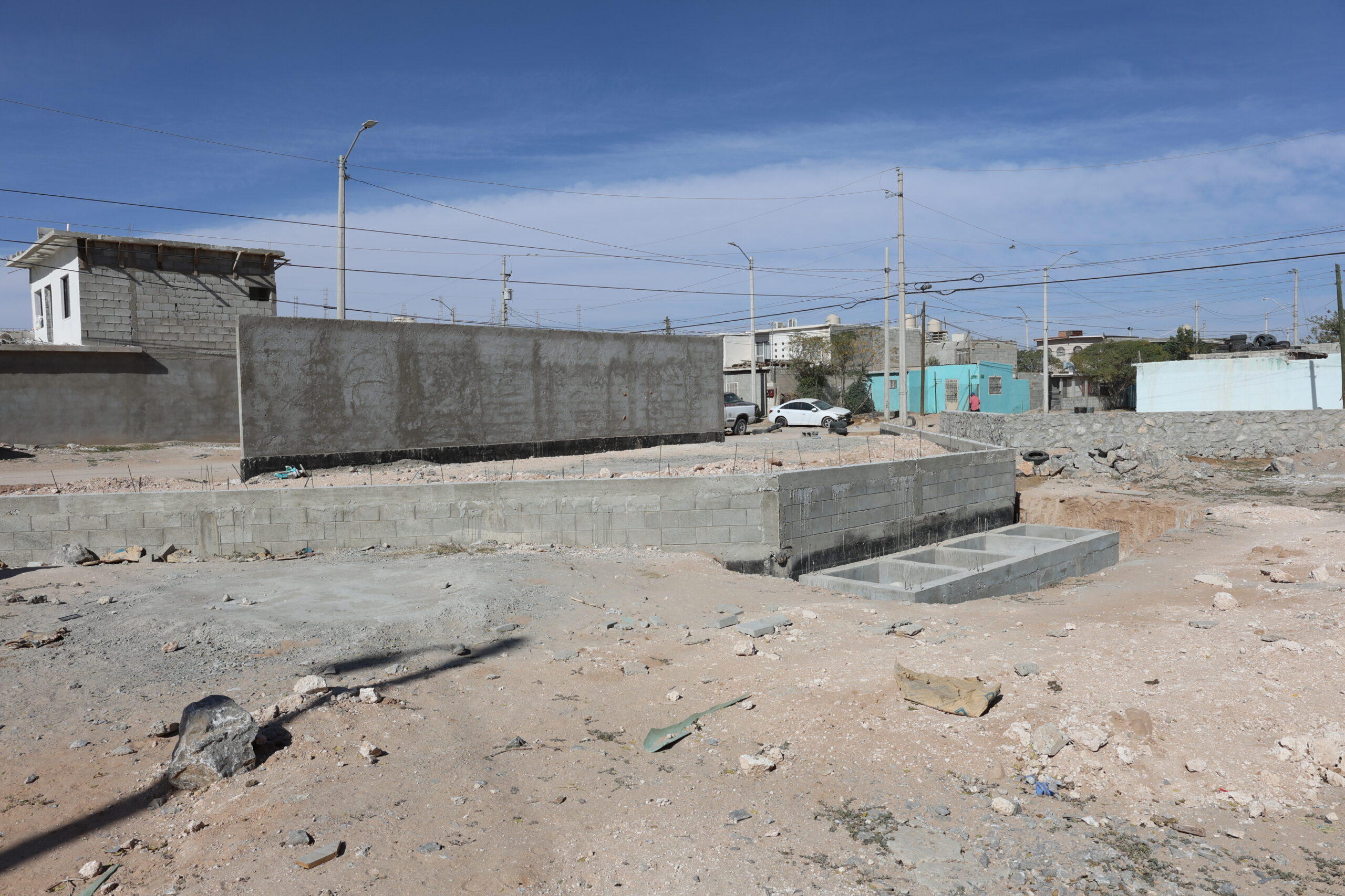 Ciudad Juárez, Chihuahua.— El ‘Teatro al Aire Libre’ de la colonia Sor Juana Inés de la Cruz, uno de los proyectos ganadores del Presupuesto Participativo del año 2023, permanece inconcluso debido a que las empresas constructoras incumplieron con los trabajos, señalan las vecinas que impulsaron el proyecto.