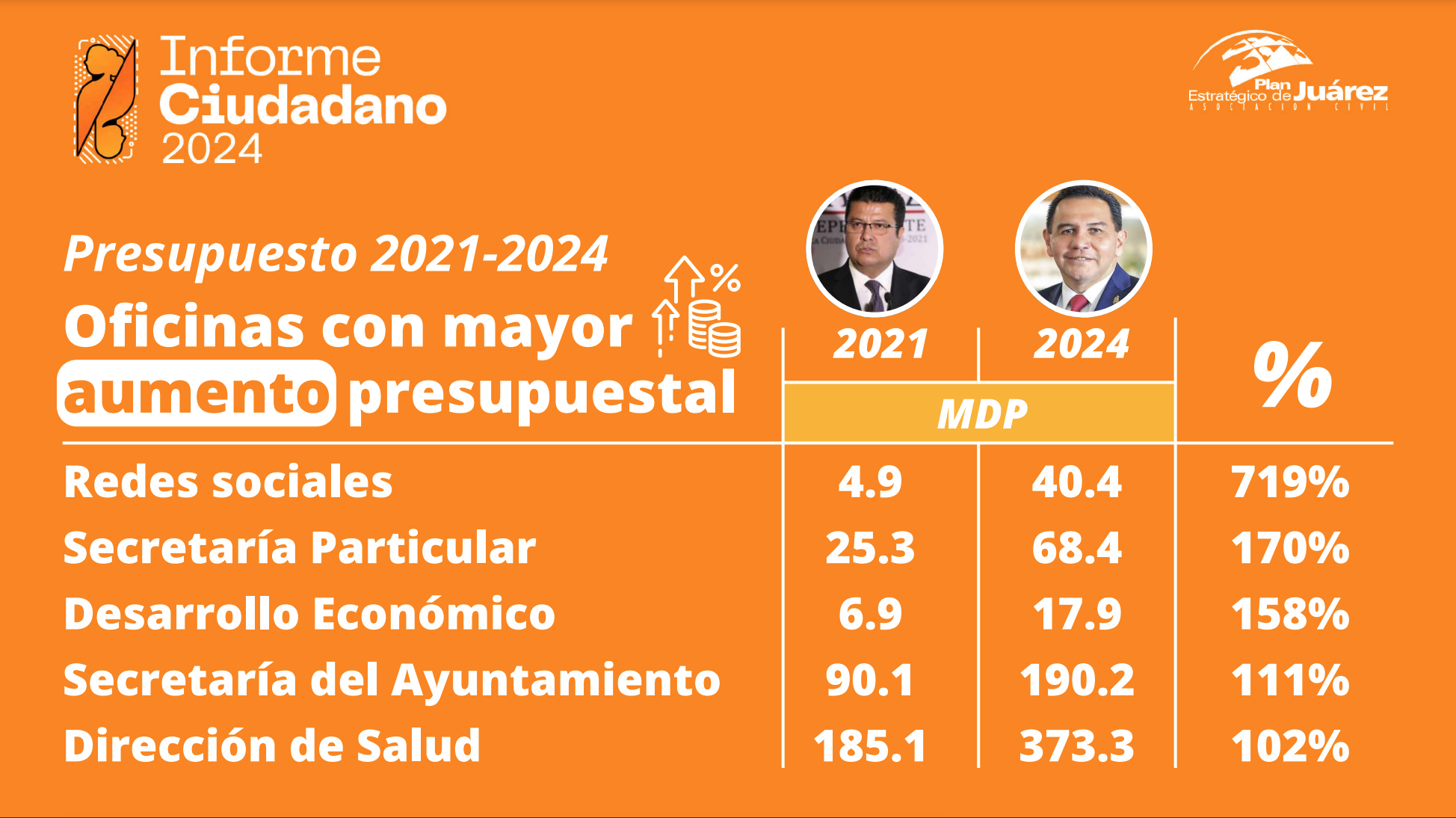 Un comparativo entre el recurso asignado a esta coordinación en 2021, cuando Armando Cabada Alvídrez era presidente municipal, y en 2024, a cargo de Pérez Cuéllar, demuestra que dicho presupuesto tuvo un aumento del 719 por ciento.