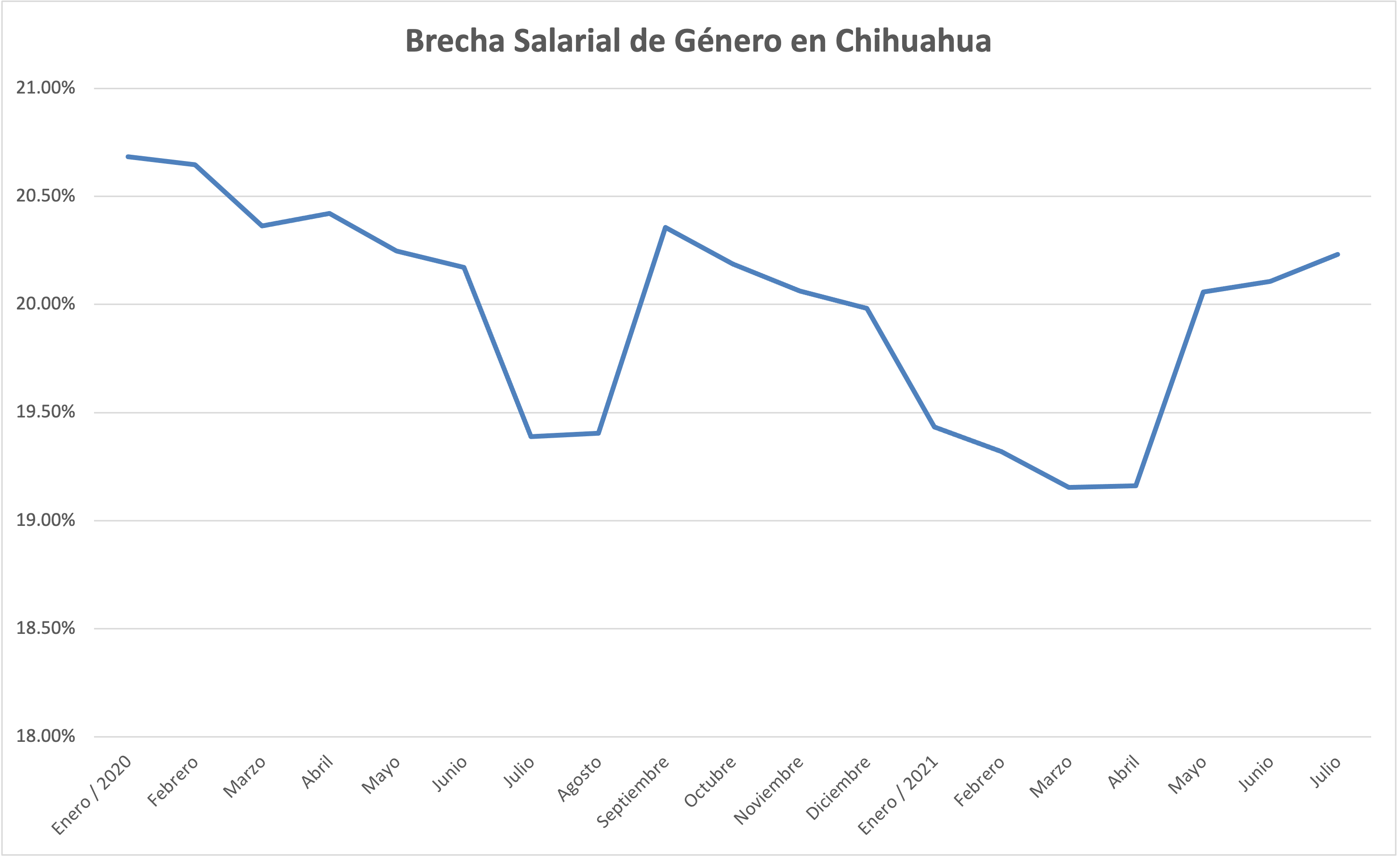 Ciudad Juárez, Chihuahua.— Las mujeres del estado de Chihuahua ganaron un salario de hasta 20.2 por ciento por debajo del que los hombres recibieron durante el mes de julio. De acuerdo con los registros de la Secretaría del Trabajo y Previsión Social (STPS), la brecha salarial de género en el estado de Chihuahua ha registrado un alza a partir del segundo trimestre de este año, dando así fin a la tendencia a la baja durante los meses del confinamiento por la pandemia de COVID-19. Mientras que el salario diario asociado a trabajadores asegurados en el Instituto Mexicano del Seguro Social (IMSS) es de 466.71 pesos, el de las trabajadoras es de 372.28 pesos. Es decir, casi 100 pesos (20.2 por ciento) menos que los hombres. Chihuahua está 5 puntos porcentuales arriba del promedio nacional: la cifra general indica que los hombres ganan 458.73 pesos diarios y las mujeres 398.42 pesos, es decir, una variación del 15.14% que se traduce 60.31 pesos menos ingreso. La brecha salarial de género mostró una reducción entre la segunda mitad del 2020 y el primer trimestre de 2021, cuando la diferencia bajo hasta un 19.15 por ciento en marzo. Sin embargo, a partir de abril esta tendencia se revirtió y la brecha entre salarios pasó progresivamente de 19.16 por ciento a 20.2 por ciento en julio. La desigualdad no es única de los salarios, pues también en la población ocupada se les ubica abajo: las trabajadoras representan el 41 por ciento (con 386 mil 064), mientras que los trabajadores el 59 por ciento (con 546 mil 207). Denisse Ortega, analista del proyecto Juárez 2030, explicó que “se tiene evidencia de que las mujeres tienen mayor incidencia a desarrollarse en áreas laborales que tienen que ver más con aspectos laborales de enseñanza y áreas de humanidades, lo que ha llevado a pensar erróneamente que deberían ser pagados con menores salarios”. La especialista dijo que esto se conjuga con la necesidad de que las empresas generen condiciones para que las mujeres en etapa de reproducción puedan cuidar a sus hijos, porque esto representa el principal desafío para asegurar el ingreso y la permanencia de las mujeres en espacio laborales.