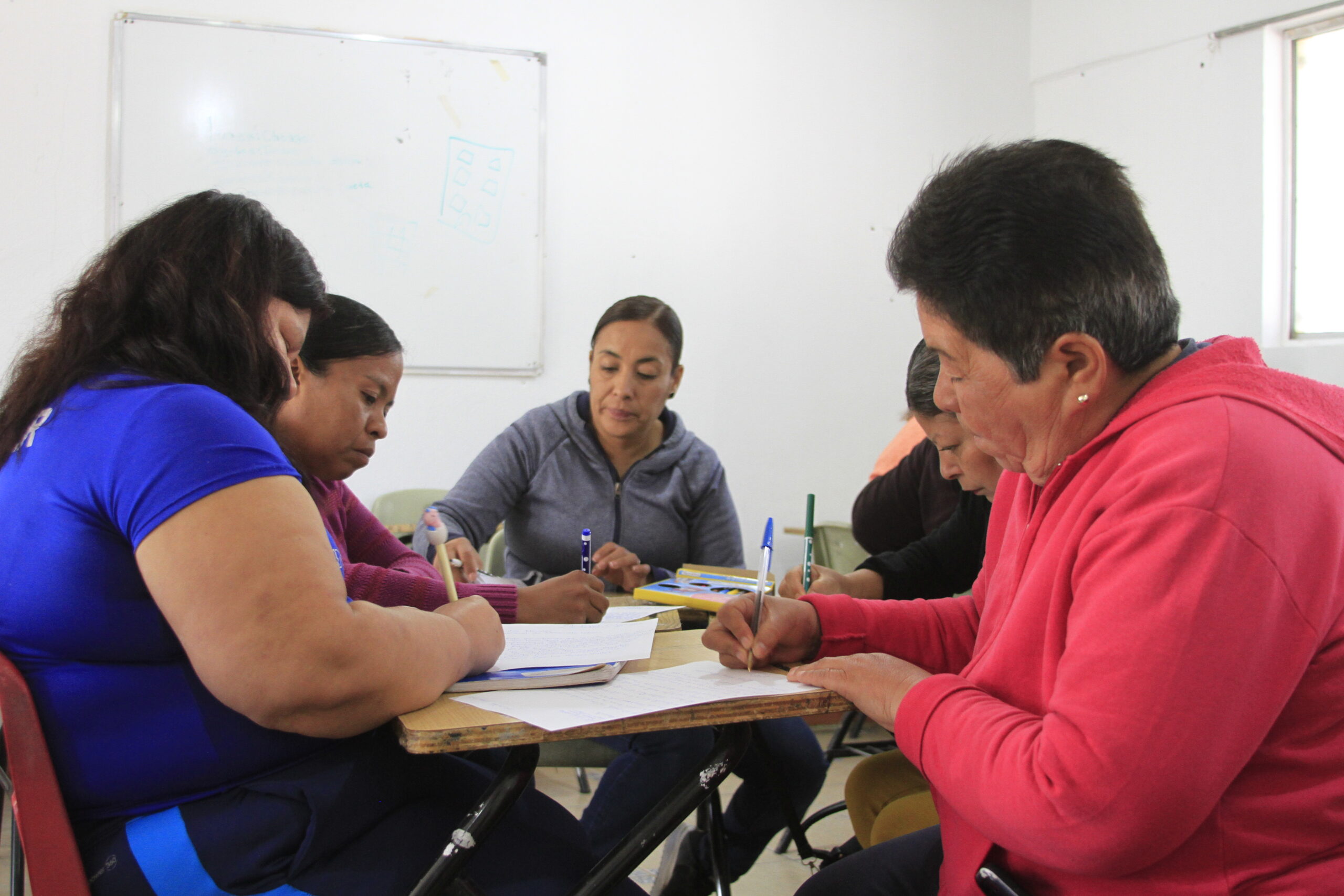 Enero de 2023: El grupo de vecinas de la colonia se reúne para decidir qué es lo que quieren que se construya en el terreno frente a la escuela primaria.