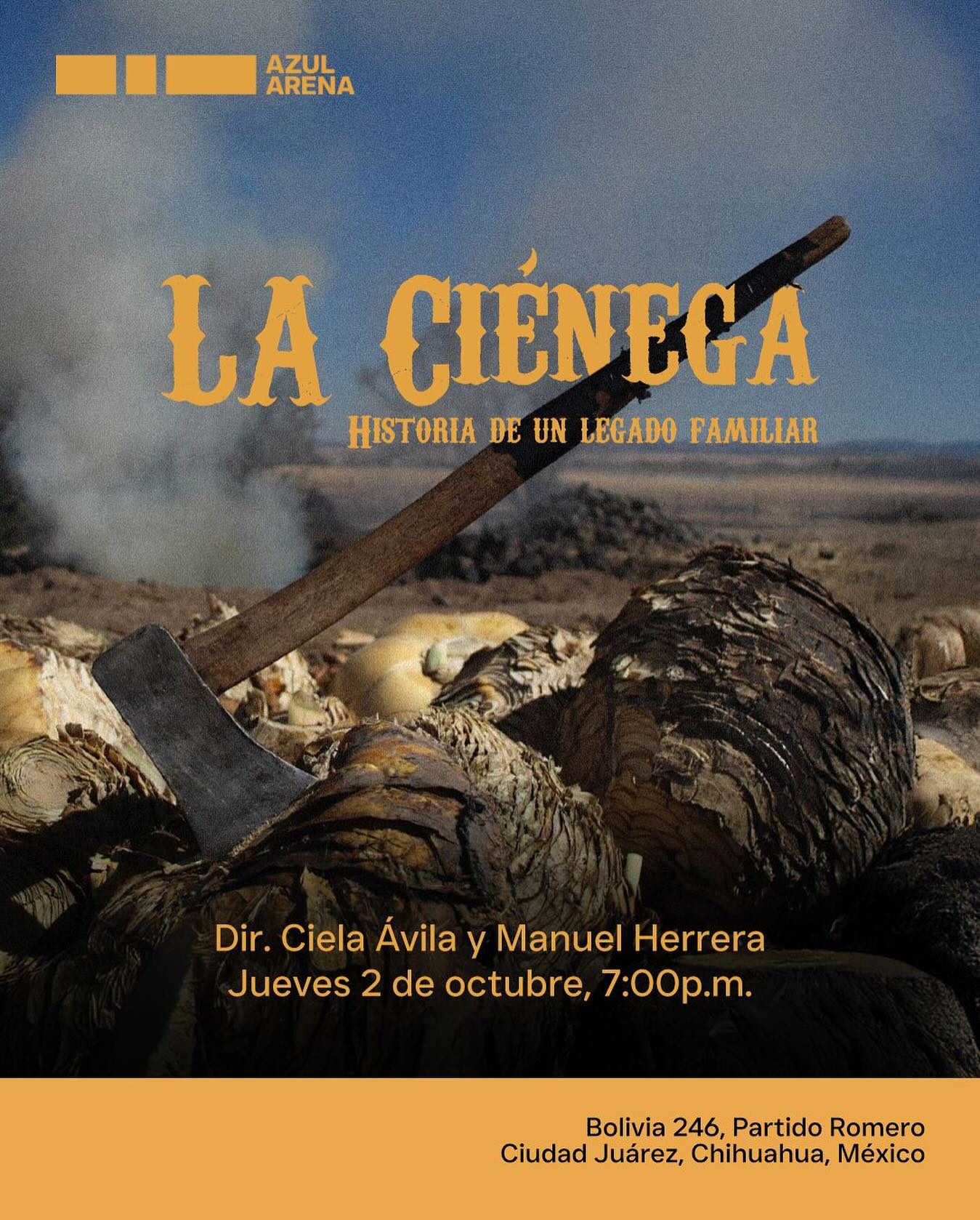 Ciudad Juárez, Chihuahua.– La galería multifuncional Azul Arena invita al estreno en Ciudad Juárez del documental ‘La Ciénega: Historia de un legado familiar’, dirigido por Ciela Ávila y Manuel Herrera.