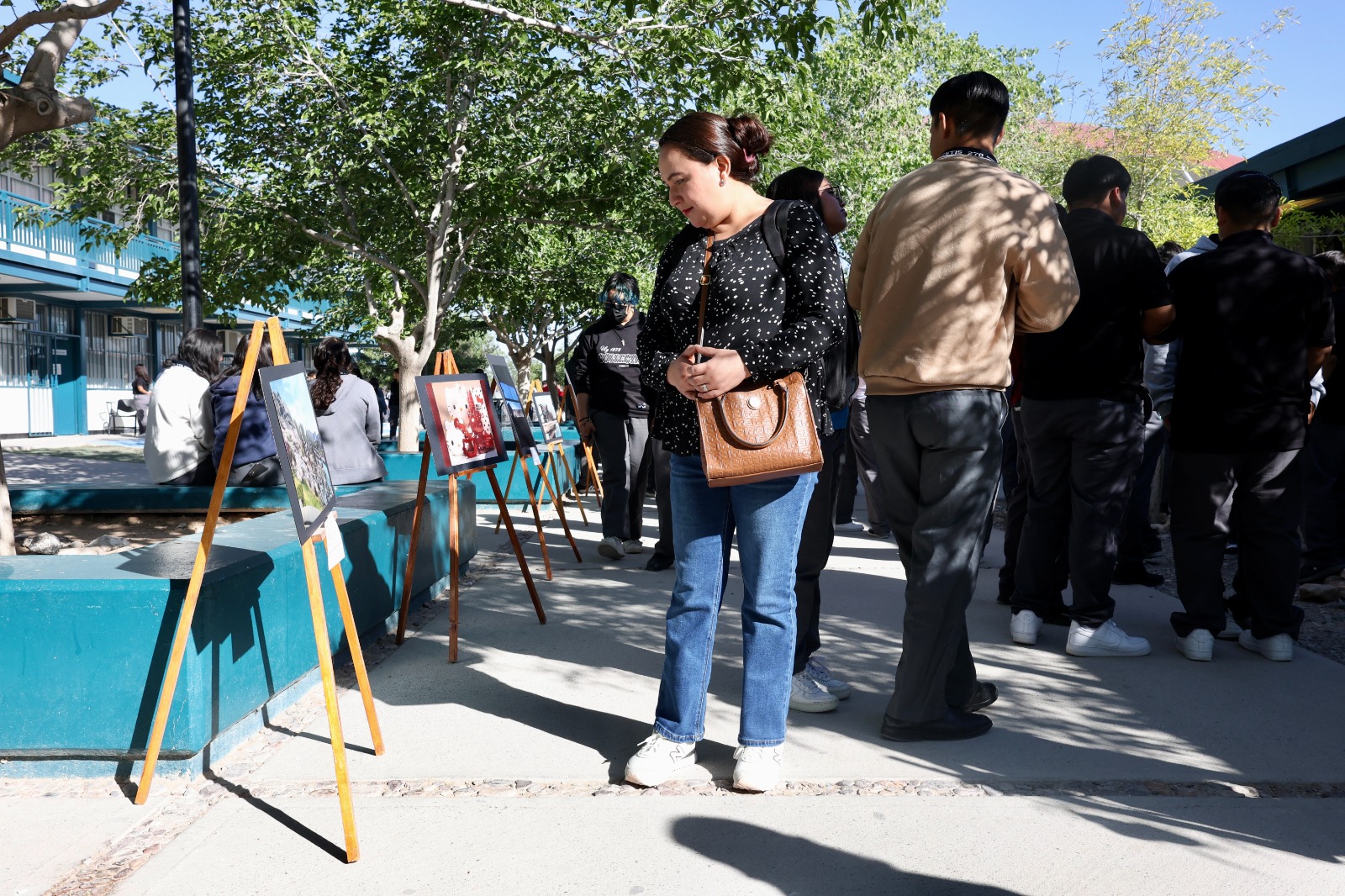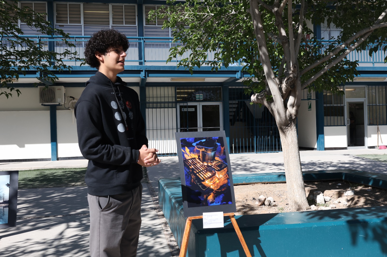 Ciudad Juárez, Chihuahua.— Una decena de estudiantes del Centro de Bachillerato Tecnológico industrial y de Servicios (CBTis) 270 que tomaron el taller de ‘fotografía de producto’ impartido por Arte en el Parque participaron en una exposición fotográfica dentro del plantel educativo este martes 23 de abril.