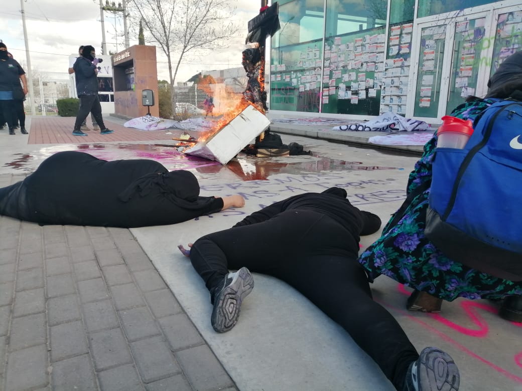 El grupo realizó pintas en todo la instalación e incendió una figura con el rostro del presidente municipal Armando Cabada, y una cruz de madera con la leyenda Ni Una Más. Además se lanzó pintura morada y rosa y se leyó un posicionamiento para la Fiscalía Especializada de la Mujer.