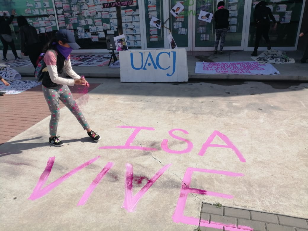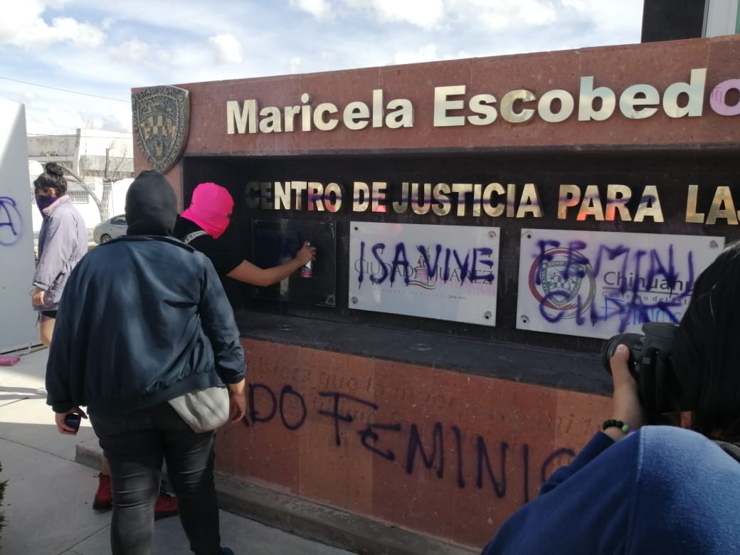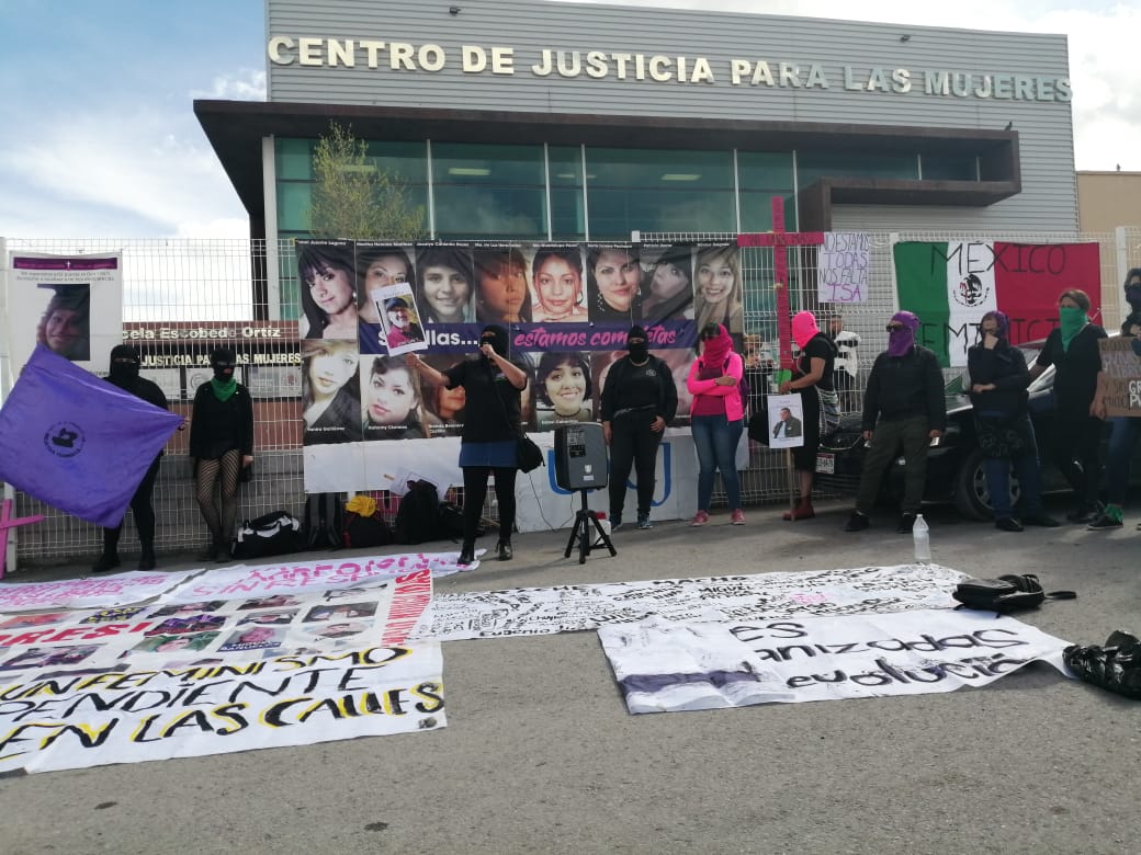 Ciudad Juárez, Chihuahua.— Esta tarde un grupo de mujeres se manifestó frente a la Fiscalía Especializada de la Mujer para exigir justicia por el asesinato de la activista y artista juarense Isabel Cabanillas de la Torre.