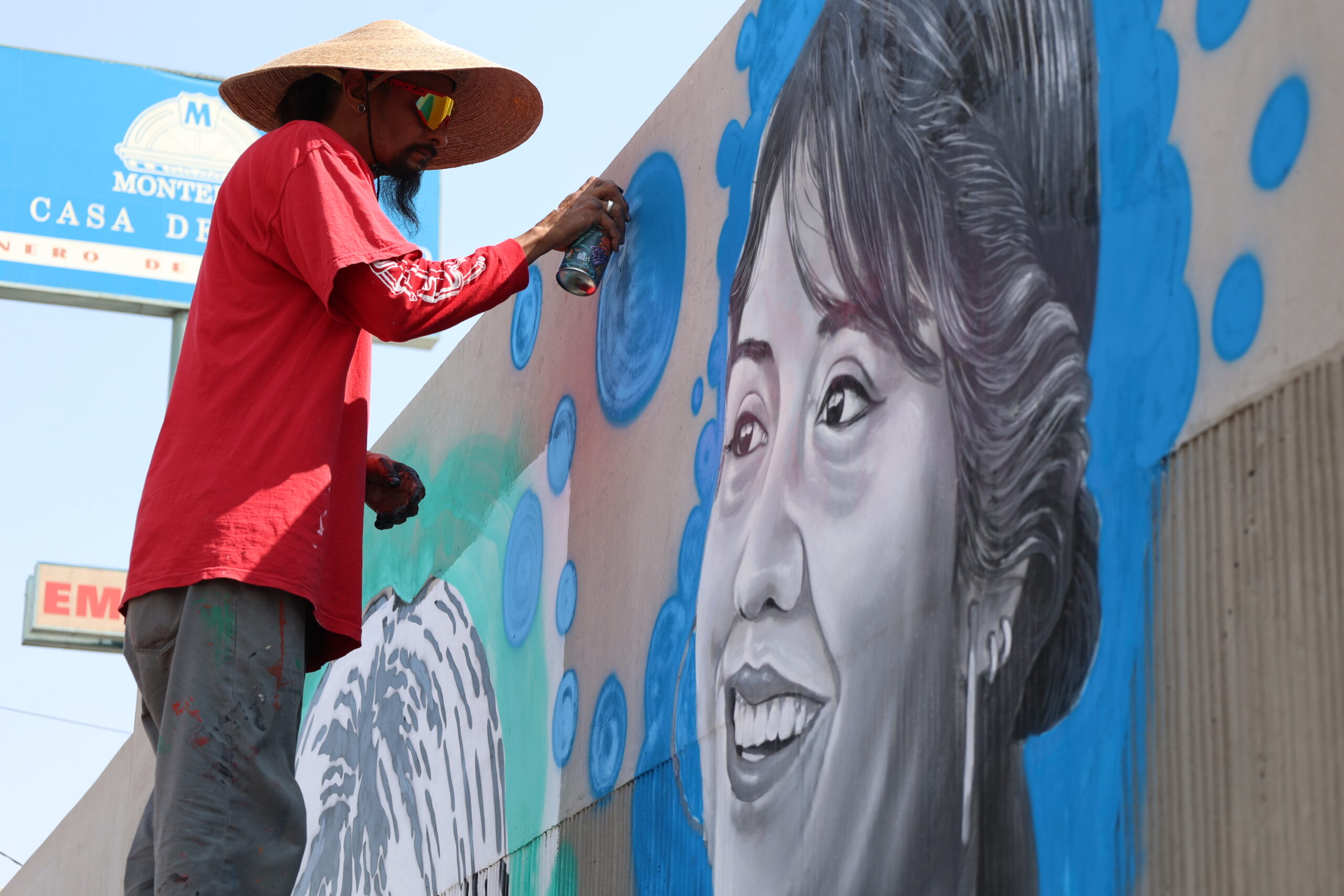 Mientras la madre de Isabel y su abogada se reunían con personal de la FEM, familiares, amigos y artistas locales se manifestaron pacíficamente al exterior del edificio, en donde plasmaron el rostro de la artista juarense.