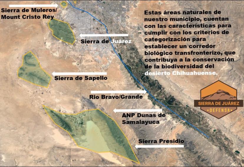 De acuerdo con dicho colectivo, también se le puede llamar Corredor Ecológico o Corredor de Conservación y esta categoría “se utiliza para nombrar una gran región a través de la cual las áreas naturales o los remanentes de los ecosistemas originales, mantienen un flujo de las especies”. En la cuenca del Río Bravo se encuentran las áreas naturales Sierra de Muleros/Mount Cristo Rey, Sierra de Juárez, Sierra de Sapello, Río Bravo/Grande, el Área Natural Protegida de las Dunas de Samalayuca y la Sierra de Presidio, las cuales tienen las características necesarias para establecer un corredor biológico transfronterizo “que contribuya a la conservación de la biodiversidad del desierto chihuahuense”.