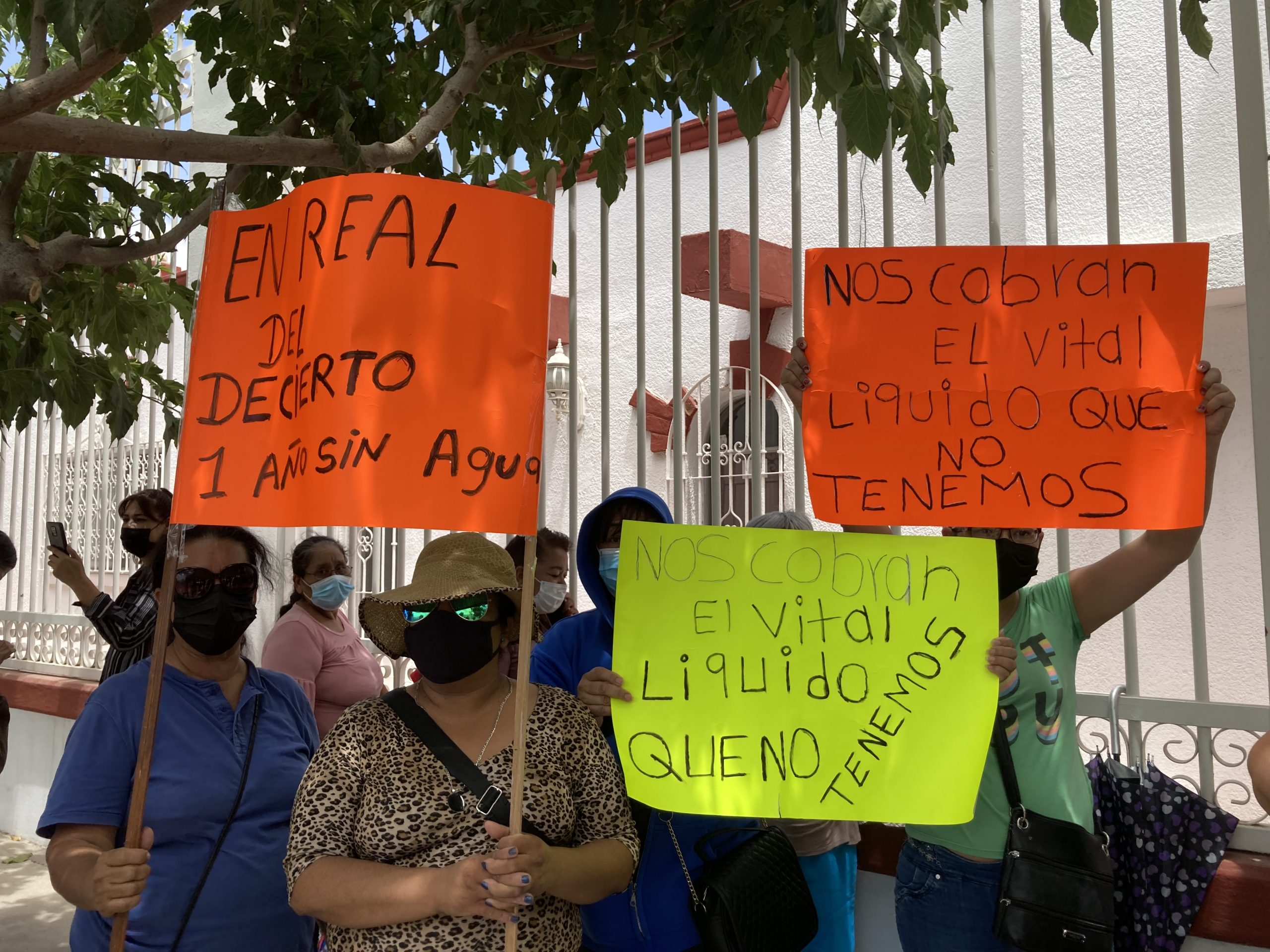 Ciudad Juárez, Chihuahua.— Habitantes de Barreales, municipio de Guadalupe, acudieron ayer a la Comisión Estatal de Derechos Humanos (CEDH) a manifestarse y presentar un oficio en el que denuncian que desde hace casi ocho meses no tienen servicio de agua potable en sus viviendas. A la manifestación también acudieron vecinos de la colonia Real del Desierto, ubicada en el suroriente de la ciudad, quienes señalaron tener un año con esta problemática. Activistas e integrantes de los colectivos Defensa del Río Bravo y del Frente del Derecho al Agua se hicieron presentes para mostrar su apoyo. “Queremos agua”, “nuestros hijos tienen sed” y “el agua no se vende, se defiende”, fueron algunas de las consignas que más de 20 personas gritaron al exterior de la CEDH mientras se organizaban para ingresar y entregar el documento dirigido al presidente de la Comisión, Néstor Armendáriz. Melisa Villalobos, vocera de los habitantes de Barreales, comentó que a finales de 2021 comenzó la escasez de agua cuando se averió el pozo que provee agua al poblado. Ante la situación, la Junta Rural de Agua y Saneamiento (JRAS) comenzó a repartir agua en pipas, medida que ha sido insuficiente.