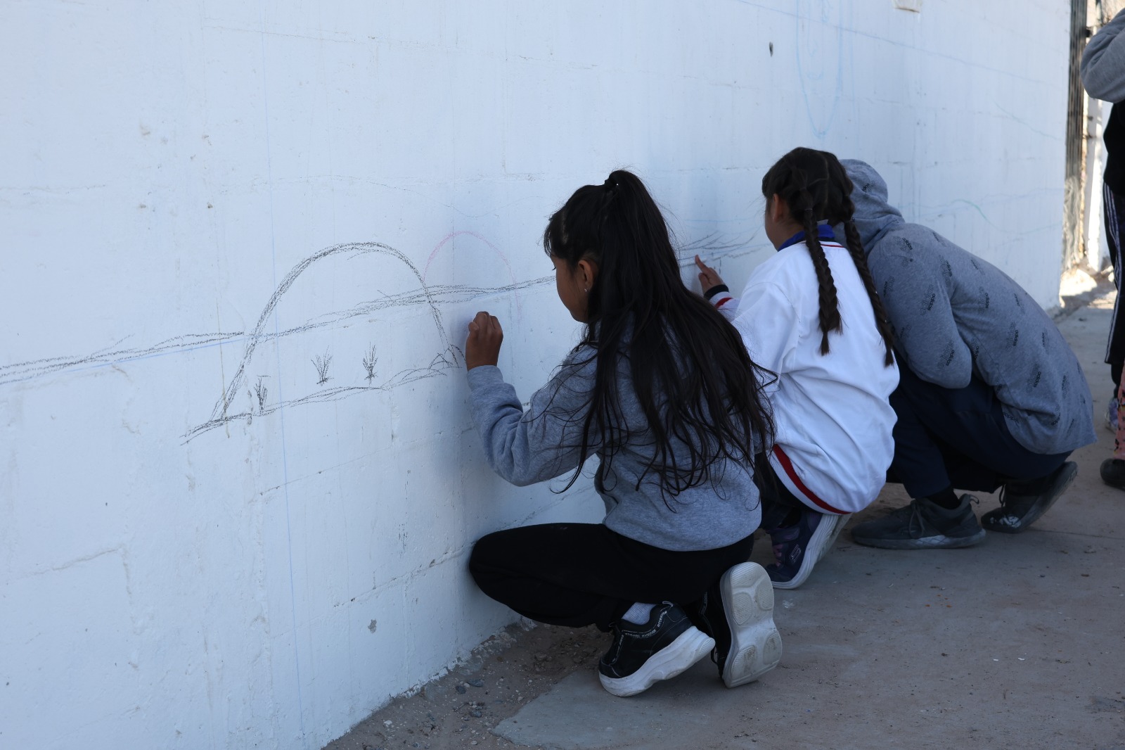 Mujeres, hombres, adolescentes e infancias se unieron este sábado 13 de enero para reflexionar sobre los logros que como colonia han tenido, con el propósito de plasmarlos en un mural que comenzó a pintarse ese mismo día en una pared de la Escuela Primaria Sor Juana Inés de la Cruz.