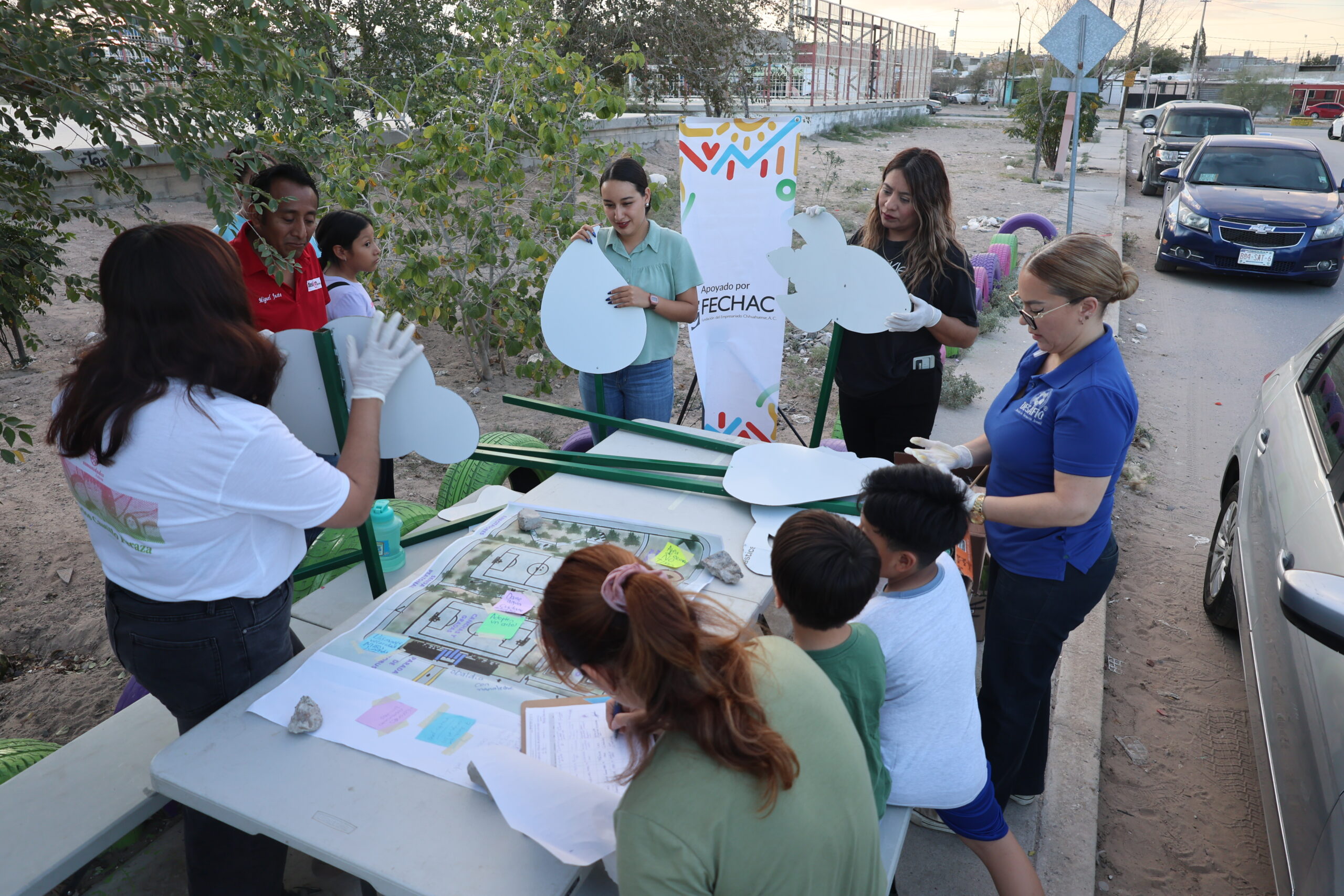 Ciudad Juárez, Chihuahua.– A través del taller “Señalética y paisajes sonoros”, vecinas y vecinos del fraccionamiento Las Gladiolas crearán señales y paisajes sonoros para su parque con el propósito de concientizar a la comunidad sobre diversas problemáticas urbanas.