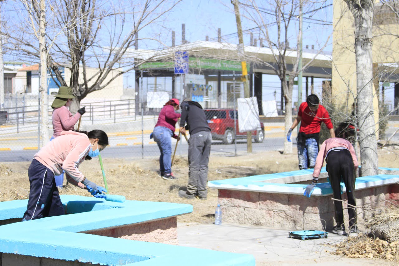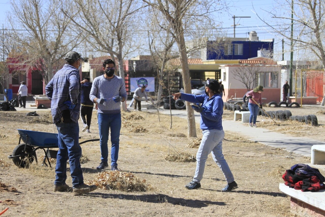 Ciudad Juárez, Chihuahua.— 25 habitantes del fraccionamiento de Parajes de Oriente participaron este sábado 19 de febrero en la jornada de mejoramiento urbano organizada por Juárez Limpio A.C. en el Parque Dunas de Namibia. En una actividad comunitaria, los vecinos del Parque Dunas de Namibia se unieron desde la 10:00 de la mañana para llevar a cabo una intensa jornada de mejoramiento urbano, que incluyó pintar la infraestructura, la construcción de un compostero comunitario, separación de los residuos sólidos, barrido, limpieza general y poda de los árboles.  Se dio a conocer que la pintura fue donada por la Fundación Paso del Norte, A.C. la cual también participó en la primera jornada de mejoramiento urbano realizada en diciembre del año pasado.