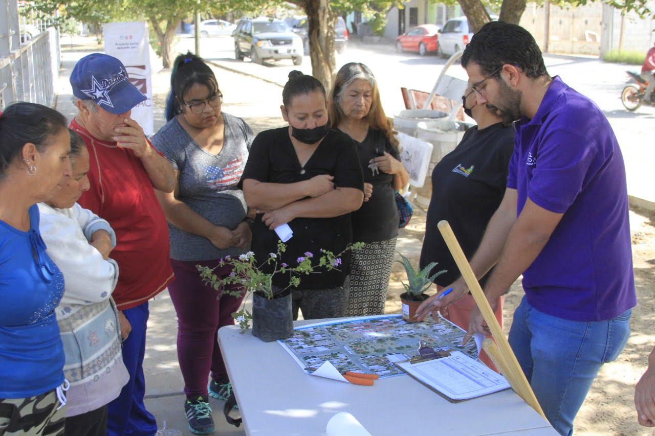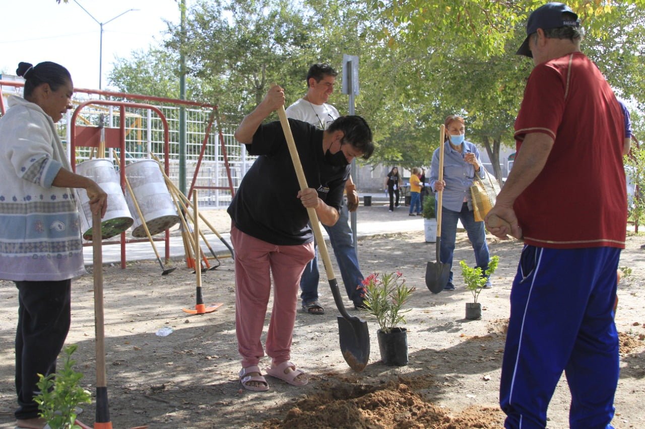 La reforestación del jardín se llevó a cabo con instrucción de Tomás Lizárraga, integrante de Juárez Limpio. El especialista invitó a los vecinos a hacer un recorrido por su parque para identificar los espacios más idóneos para la reforestación.
