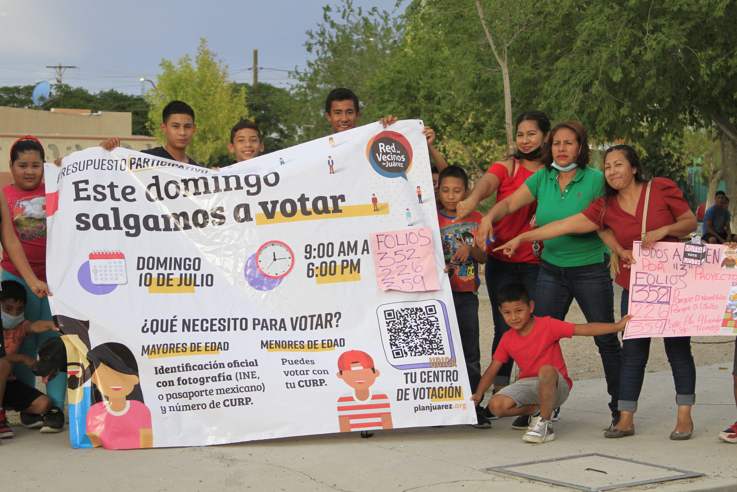 Ciudad Juárez, Chihuahua. – Este año el suroriente concentra más del 30 por ciento de los proyectos de Presupuesto Participativo impulsados por vecinas y vecinos comprometidos con su comunidad, quienes desde esta semana han emprendido diversas acciones comunitarias para darle difusión a sus proyectos y atraer votantes ante la jornada de votaciones este domingo 10 de julio. Alianzas, volanteo, perifoneo y apropiación de espacios públicos han sido algunas de las estrategias que habitantes de diferentes colonias del suroriente han decidido emprender en este ejercicio de consulta ciudadana, contemplado en la Ley de Participación Ciudadana del Estado de Chihuahua. Este año el presupuesto participativo contempla 252 millones de pesos divididos en cinco polígonos delimitados por el Instituto Municipal de Investigación y Planeación (IMIP), de los cuales, 70 millones serán destinados al polígono 5, el suroriente de Ciudad Juárez. De la convocatoria que se publicó el pasado 22 de marzo, surgieron 366 propuestas, de las cuales 179 cumplieron con los lineamientos de factibilidad y viabilidad. Ahora, los promotores de cada proyecto, se encuentran en la fase de proselitismo para atraer votantes. Todos estos proyectos satisfacen necesidades colectivas, tal y como lo indicaba la convocatoria; muchos de ellos solicitan acceder a infraestructura básica como pavimentación o espacios recreativos en zonas donde los gobiernos mantienen una deuda histórica. Este domingo 10 de julio serán instaladas 100 mesas receptoras de votos en un horario de 9:00 de la mañana a 6:00 de la tarde; previo a ese día, las campañas de los vecinos y vecinas para atraer el voto, se intensificarán.
