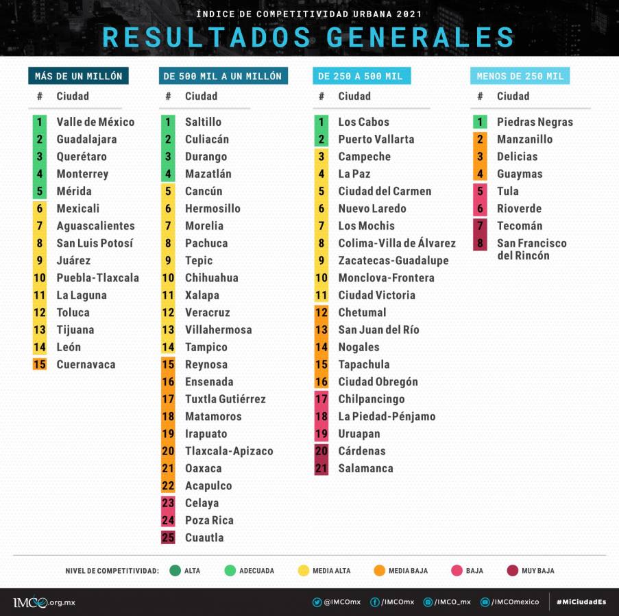 El IMCO aseguró que las ciudades empeoraron en temas económicos, sociales y educativos: “En promedio, las zonas urbanas perdieron diversidad en los sectores que aportan a sus economías, la desigualdad en los salarios se incrementó, y un mayor porcentaje de los trabajadores declararon no percibir ingresos”. Además, sostiene que “el desarrollo del talento se vio particularmente afectado, pues, aunque el sistema educativo ya tenía problemas estructurales, la pandemia los profundizó”.