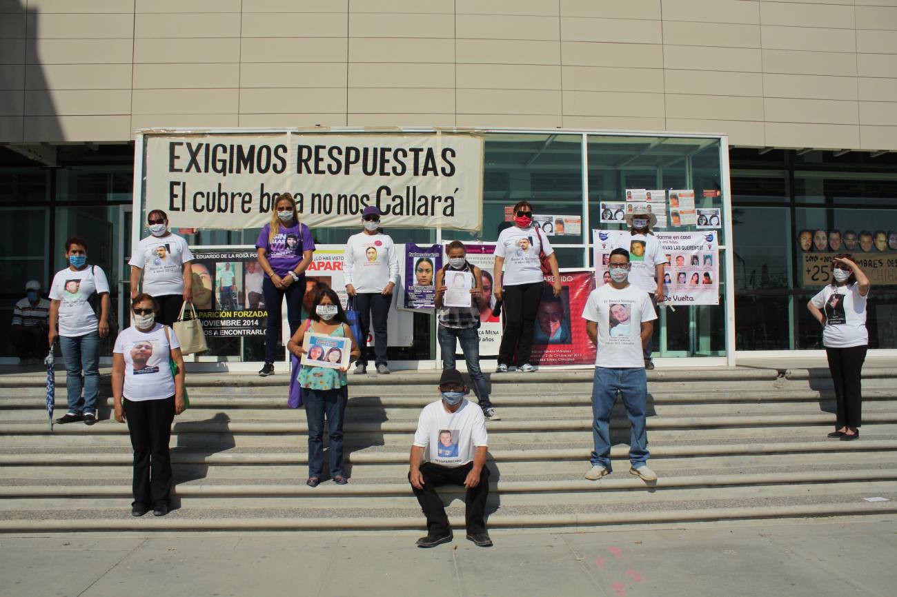 Ciudad Juárez, Chihuahua.— ’El cubrebocas no nos callará’ es la lema que los familiares de víctimas de desaparición forzada y sobrevivientes de tortura han adoptado en Ciudad Juárez, Chihuahua, para continuar su lucha en medio de la pandemia mundial por la COVID-19. El embate del coronavirus, dicen, no detiene la exigencia de justicia. En cambio, en esta tarde calurosa de agosto de 2020, se reúnen al exterior de la Fiscalía de la Zona Norte para demandar respuestas. Las paredes de vidrio de la Fiscalía, un edificio amurallado por bardas de tres metros de altura y 20 centímetros de espesor, lucen las consignas que hoy los familiares gritan: Los queremos de vuelta / Exigimos respuestas / CEAV ya estamos registrados ¿ahora qué? Sobre una cartulina que enuncia las 2 mil 553 desapariciones de hombres en Chihuahua entre 2010 y julio de 2020, se recortan los rostros de 10 jóvenes desaparecidos en Juárez y municipios aledaños. Son sus familias —las de Erick Aguirre, Adrián Favela, Antonio Chaparro, Armando Guzmán, César Gonzalo Durán, Ángel Eduardo de la Rosa, Adriel Alonso Ávila, Jacobo Orozco, César Ávila y Erick Cuenca— las que integran el colectivo Familias Unidas por la Verdad y la Justicia, que hoy se manifiesta en una Fiscalía casi desierta por la reducción de personal administrativo debido a la contingencia sanitaria. El colectivo forma parte del Movimiento Nacional por Nuestros Desaparecidos en México, una red de organizaciones y víctimas que en 2015 abogó por la creación de la Ley General en Materia de Desaparición Forzada y actualmente lo hace por su correcta implementación. Una de las organizaciones que acompaña al Movimiento es el Centro de Derechos Humanos Paso del Norte (CDHPN), que desde 2011 ofrece en Chihuahua atención jurídica y psicológica a familiares de personas desaparecidas y sobrevivientes de tortura. Los integrantes del colectivo toman turnos al micrófono bajo el sol quemante del mediodía, y expresan su sentir ante una explanada poblada casi exclusivamente por ellos y algunos representantes de la prensa local. “Un cubrebocas no nos va a callar ni nos va a detener, ni el COVID o como se llame esta cosa que nos mantiene encerrados. Yo no me puedo quedar en casa porque falta mi hija. Mientras mi hija no esté en casa, yo tengo que estar en la calle”, dice Ana Cuéllar Figueroa, madre de Jéssica Ivonne Padilla Cuéllar, que desapareció en 2011, a los 16 años de edad. El director del CDHPN, el presbítero Óscar Enriquez Pérez, toma la palabra para señalar que Chihuahua es el sexto lugar nacional en cuanto al número de personas desaparecidas. “El 98 por ciento de los delitos quedan sin resolver y esos niveles de impunidad, además de favorecer la repetición del delito, son el argumento más claro de su incapacidad”, dice. De acuerdo con datos oficiales de la Fiscalía General del Estado (FGE) de Chihuahua, en los últimos 10 años se cuentan 2 mil 994 reportes de desaparición en la entidad, de los cuales el 85% corresponde hombres, la mayoría de ellos de entre 18 y 30 años de edad. Juárez es el municipio con más reportes de desaparición con 661, seguido por la capital, Chihuahua, con 499 y el municipio de Cuauhtémoc con 475. Tras pasar listas a sus desaparecidos (con nombre y apellidos, para abonar a la memoria) los familiares ingresan entonces al edificio de la Fiscalía para entregar dos oficios dirigidos a la titular de la Comisión Ejecutiva de Atención a Víctimas (CEAV), Irma Villanueva Nájera, y al fiscal César Augusto Peniche Espejel, en los que piden mesas de trabajo para la revisión de los casos. A regañadientes, mientras un agente estatal les toma fotos con su celular, les permiten ingresar a dejar los documentos. Un sello y una firma decretan el fin de lo que para la autoridad estatal es un mero acto protocolario. Las mesas de trabajo, al menos en este año, no se llevarán a cabo.