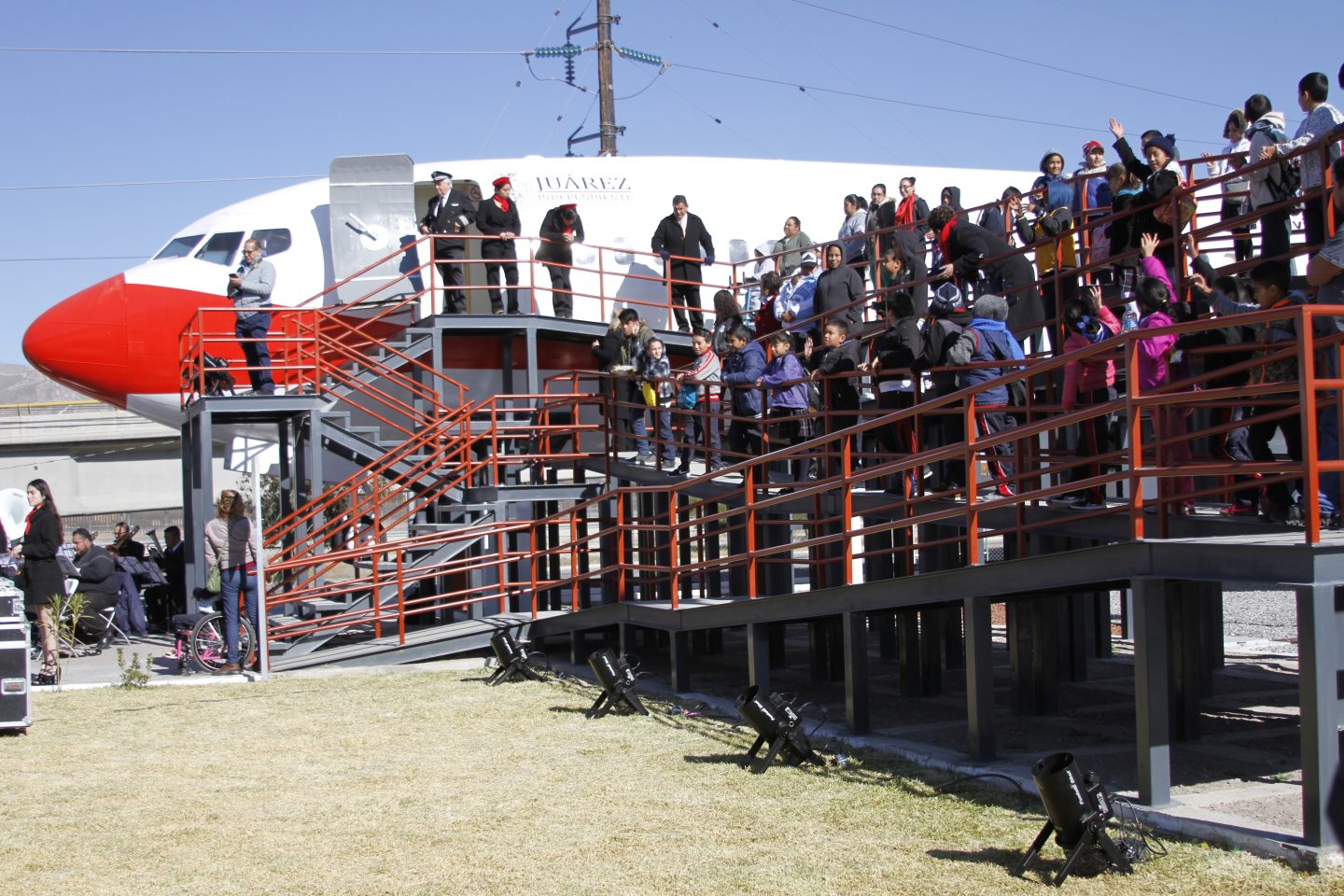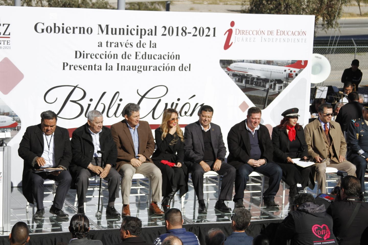 Ciudad Juárez, Chihuahua.— El Biblioavión, obra contemplada para finalizarse desde agosto de este año, fue inaugurado esta mañana por autoridades municipales. De acuerdo con el Alcalde, la inversión total de la obra fue de 19.5 millones de pesos, que se obtuvieron de fondos federales. “Con este proyecto estamos rompiendo el paradigma de las bibliotecas solemnes”, dijo el alcalde refiriéndose a que el biblioavión no cuenta con libros físicos pero tiene tecnología de simulador de vuelo, un audiovisual y un acervo digital, entre otras actividades en el área de cómputo. “Siempre que hablamos de bibliotecas viene a nuestra mente las imágenes de un edificio lleno de libros en donde se permanece en silencio o se habla quedito para no molestar. También nos imaginamos grandes libreros con muchos libros, algunos tan antiguos que da miedo tocarlos para que no se vayan a destruir”, dijo. “Cuando iniciamos este proyecto recordé una frase de Jorge Luis Borges: Siempre imaginé el paraíso como una especie de biblioteca”, refirió. “Y yo creo que con el biblioavión se cumple con una biblioteca que va a ser un paraíso para muchos niños adolescentes y adultos, porque esta no es una biblioteca como las demás, para empezar como ya lo pudieron observar, no está en un edificio si no dentro de un avión, pero no sólo eso sino que es una biblioteca con una plataforma virtual que se divide en seis subplataformas cada una con diferentes temáticas”, expresó el alcalde. Dio a conocer que éste es el sexto biblioavión que se construye en el país. El espacio cuenta con tres áreas: la de los simuladores de vuelo, en el frente; en medio tiene el área de cómputo y el la parte de atrás tiene un audiovisual con espacio para 31 personas. En total el aforo del biblioavión es de 55 personas. El biblioavión será operado por personal de la Dirección de Educación capacitado para atender a los usuarios que acudan a visitarlo.