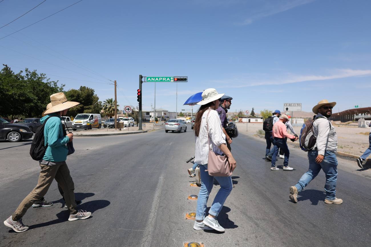 Ciudad Juárez, Chihuahua.— En una ciudad donde el clima es extremo y la infraestructura urbana está diseñada para el automóvil, caminar es resistir. Tras dos años de suspensión, el colectivo De.siertos Andantes reanudó las caminatas de la iniciativa Jane’s Walk, organizadas para conocer, observar y analizar las condiciones de las calles y la infraestructura urbana. Este viernes inició la jornada con la ruta ‘La border y el río: regresar a la frontera’, en la que recorrieron el bordo y la zona del Centro que lleva a la frontera con El Paso, Texas. La caminata inaugural la dirigieron Brenda Ceniceros Ortiz, académica investigadora en arquitectura de la UACJ, y el artista urbano Jorge “Yorch” Pérez. “Jane’s Walk es un movimiento internacional que se trata del activismo de caminar; Jane Jacobs es la autora de varios libros de urbanismo de donde se saca la inspiración para el caminar como un acto de resistencia… y qué más resistente que caminar la frontera en Ciudad Juárez”, explicó Brenda Ceniceros.