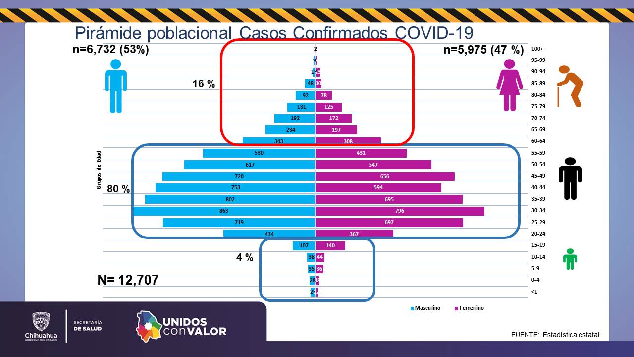 Ciudad Juárez, Chihuahua.— La Secretaría de Salud informó que el estado alcanzó los 12 mil 707 casos acumulados confirmados de COVID-19, luego que se sumaran 168 en las últimas 24 horas. El director médico Zona Norte, Arturo Valenzuela Zorrilla, dijo que respecto a las defunciones el estado registra mil 227, de las que 9 se sumaron en el reporte de las últimas 24 horas. El director médico de la Zona Norte dio a conocer que la semana número 34 de la pandemia cerró con 919 casos confirmados de contagio, por lo que se volvió el pico más alto desde el inicio de la contingencia sanitaria, dijo.