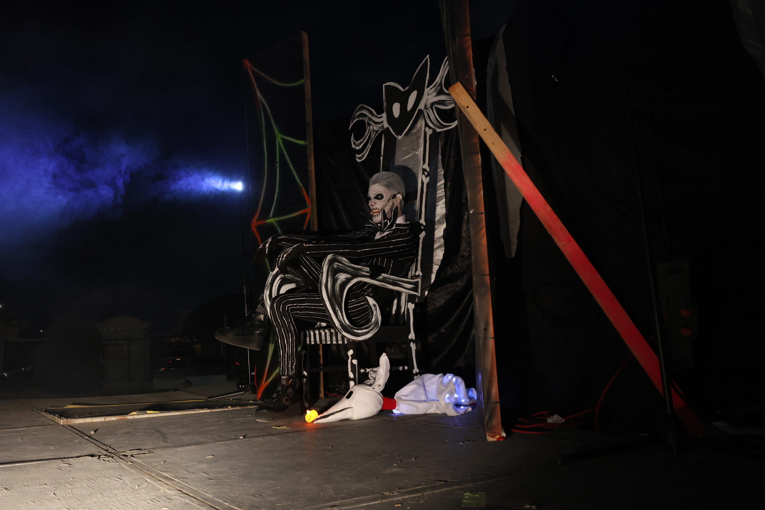 Ciudad Juárez, Chihuahua.– La compañía de teatro AREG Producciones presentó la obra ‘Pesadilla antes de Navidad’ en las colonias Parajes del Sur y Frida Kahlo, como parte de la serie de obras del programa ‘Puestas en escena’, organizado por la asociación civil Arte en el Parque.