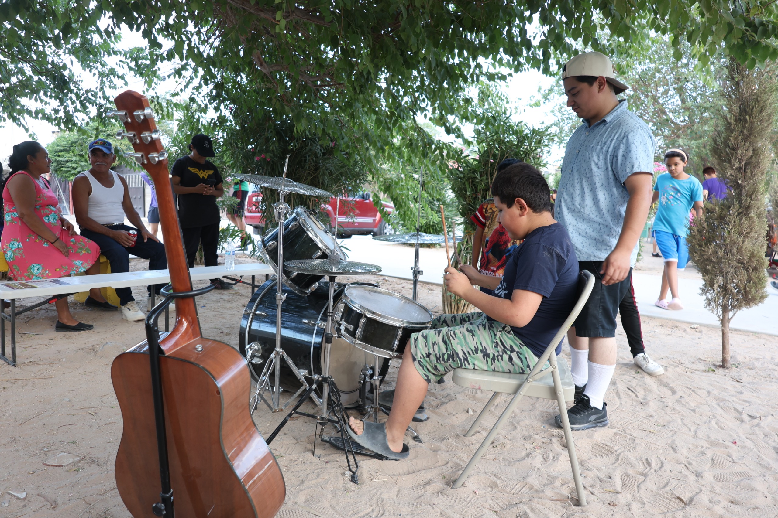 La sesión se realizó el viernes pasado en el Parque María Martínez, a donde acudieron decenas de niñas y niños interesados en aprender a tocar batería y guitarra.