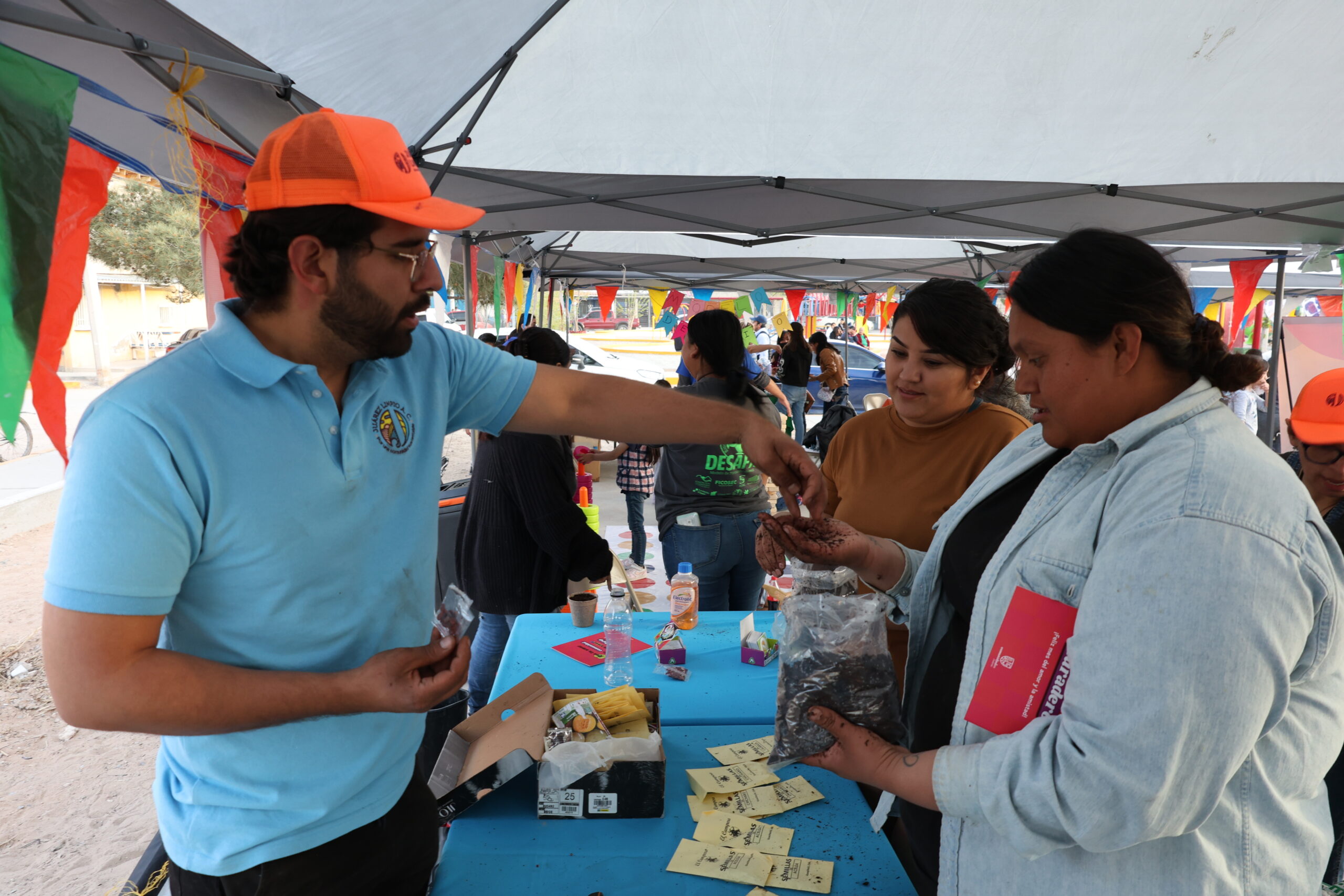 Ciudad Juárez, Chihuahua.— La organización Juárez Limpio impartió el pasado viernes talleres de composta y huertos caseros a habitantes de la colonia Sor Juana Inés de la Cruz, como parte de las actividades del festival comunitario ‘Te imaginas si fuéramos más’ organizado por la asociación civil Arte en el Parque.
