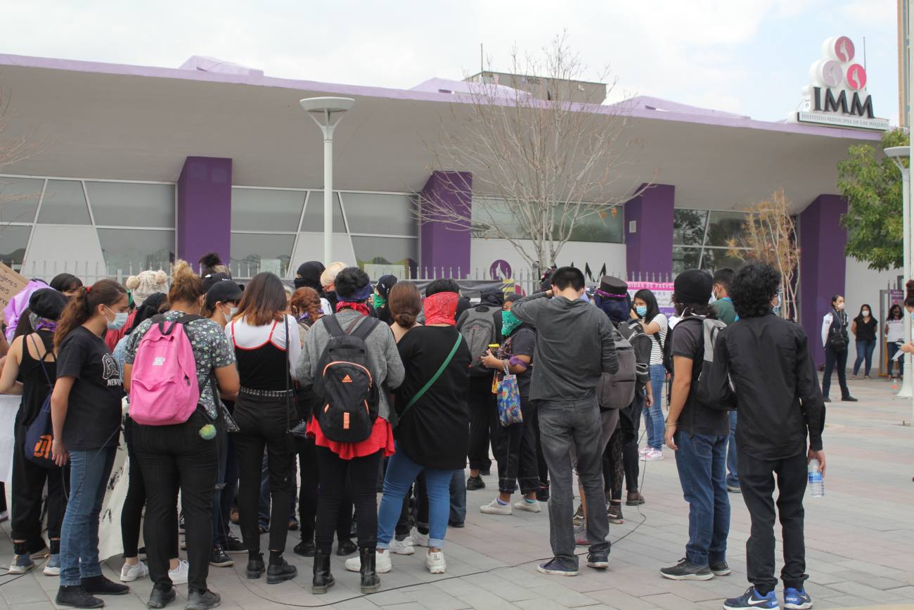 Ciudad Juárez, Chihuahua.— Alrededor de 60 mujeres realizaron esta mañana una manifestación en la zona centro en contra de la represión, abuso y violencia policiacos hacia los movimientos y agrupaciones feministas que luchan por la equidad de género, la justicia y la no violencia contra las mujeres. El evento inició en el Instituto Municipal de las Mujeres (IMM) en medio de un fuerte operativo policiaco con el que elementos de la Secretaría de Seguridad Pública Municipal impidieron el acercamiento de las manifestantes al edificio municipal. Las mujeres representantes de diversas colectivas y feministas independientes acusaron al IMM de guardar silencio ante la represión policiaca de la que fueron víctimas el pasado 5 de septiembre, cuando fueron detenidas 27 mujeres en medio de una manifestación en contra de la represión y abuso policiaco. Durante la detención las mujeres fueron víctimas de agresiones sexuales así como de violencia física y psicológica; denunciaron que les tocaron los senos, les golpearon la cabeza, el abdomen y las piernas, dejando en algunas de ellas lesiones visibles.