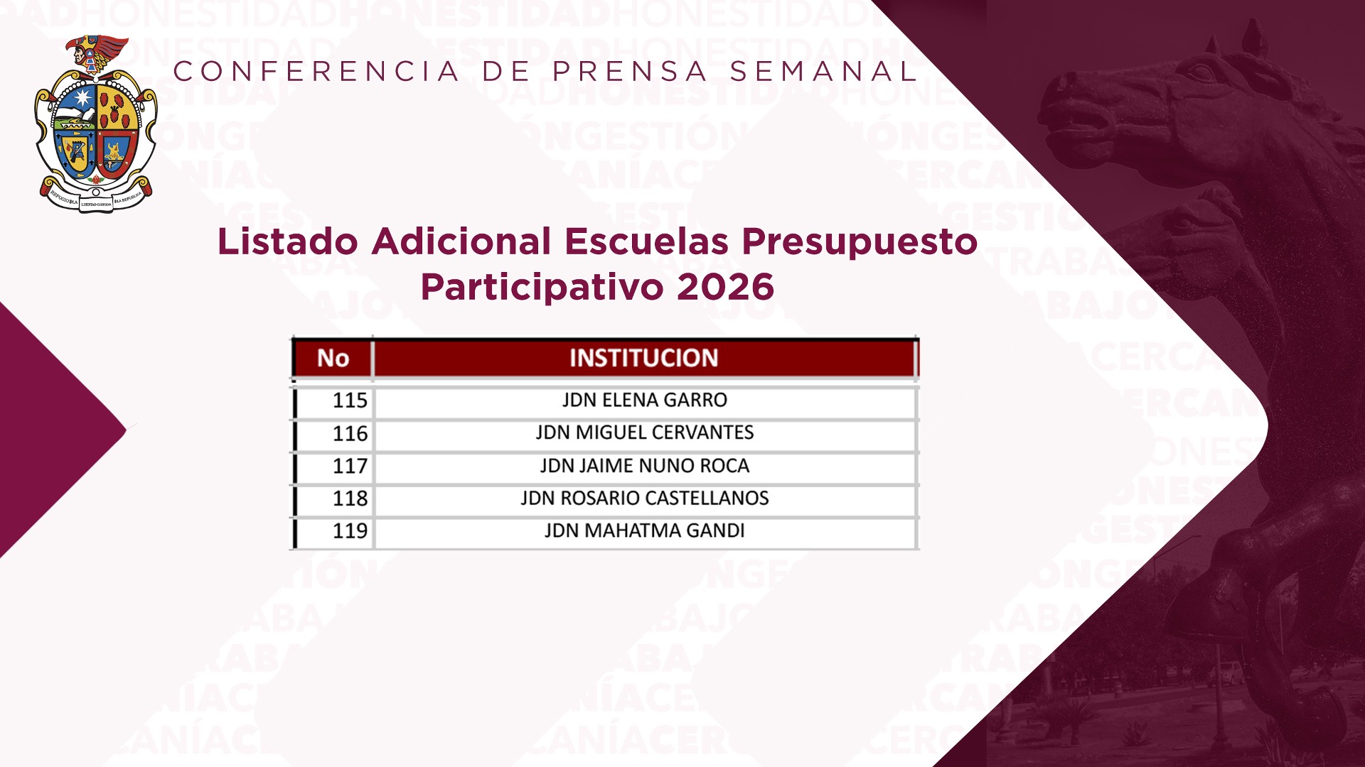 “Tuvimos una votación histórica en 2025 casi 180 mil juarenses (…) lo que no quisimos fue después de una participación tan alta dejar a tantos proyectos que tuvieron también muy buena votación fuera”, afirmó.